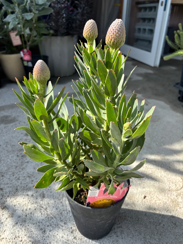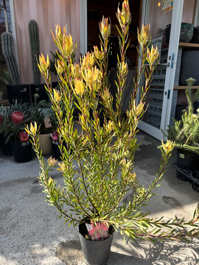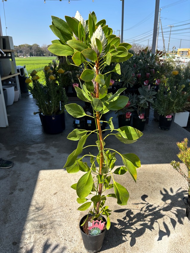 【プロテア シナロイデス】 圧倒的に美しい花を咲かせるプロテア。 人気、希少性がかなり高く、ここまで立派な株はほぼ出回りません! 極上のプロテアをおうちで是非堪能してみてください^ ^ ・サイズ:6号2フラワー ■下記注意事項、必読 ・実店舗での、販売も行っております。 タイミングによっては予告なしに、"SOLD OUT"になる場合がございます。 その場合、キャンセル処理をさせていただきますのでご了承ください。 ・植物について 植物は日々成長、変化している為、商品写真と多少異なることがあります。 植物のメンテナンス等で剪定をして形が変わっている場合もございますので 現状等気になる方はお気軽にお問い合わせください。 ・発送の際の梱包について 梱包する箱の規格の関係で、枝がしなるものは植物に負担がない程度で、しならせる場合がございます。 返品、返金、交換等は受け付けてません。御理解の上、慎重にご購入お願い致します。