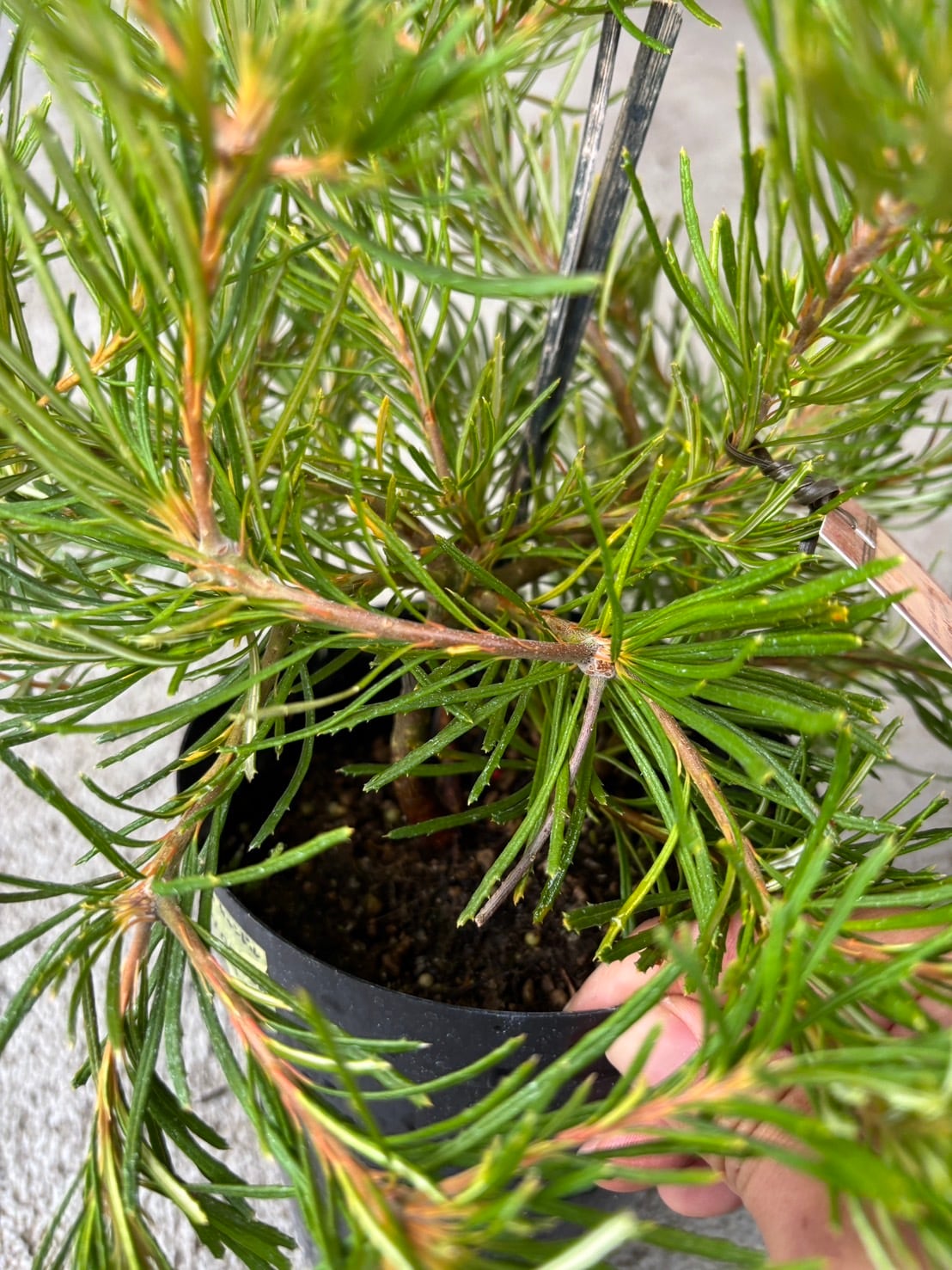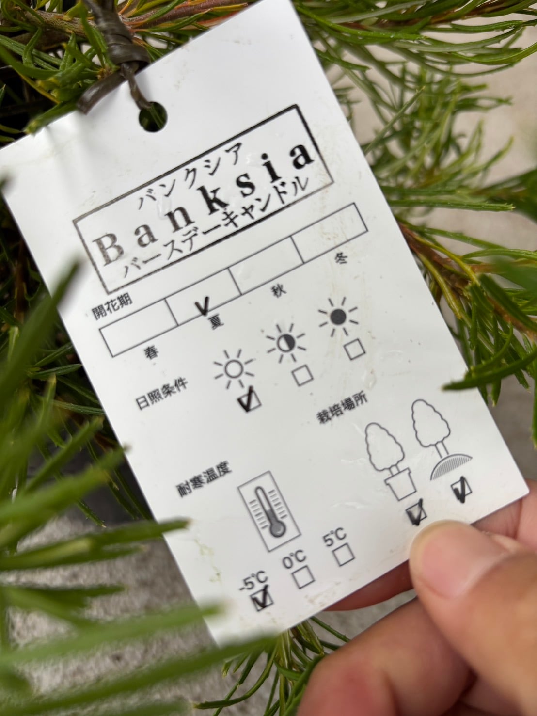 バースデイキャンドルは鉢物用に品種改良された矮性種のバンクシアです^^蕾がバースデイケーキのろうそくのような形をしています。ブラシ状の花は開花すると濃い黄金色となり、また花後はドライフラワーのようになって残り、花の変化を楽しめます!