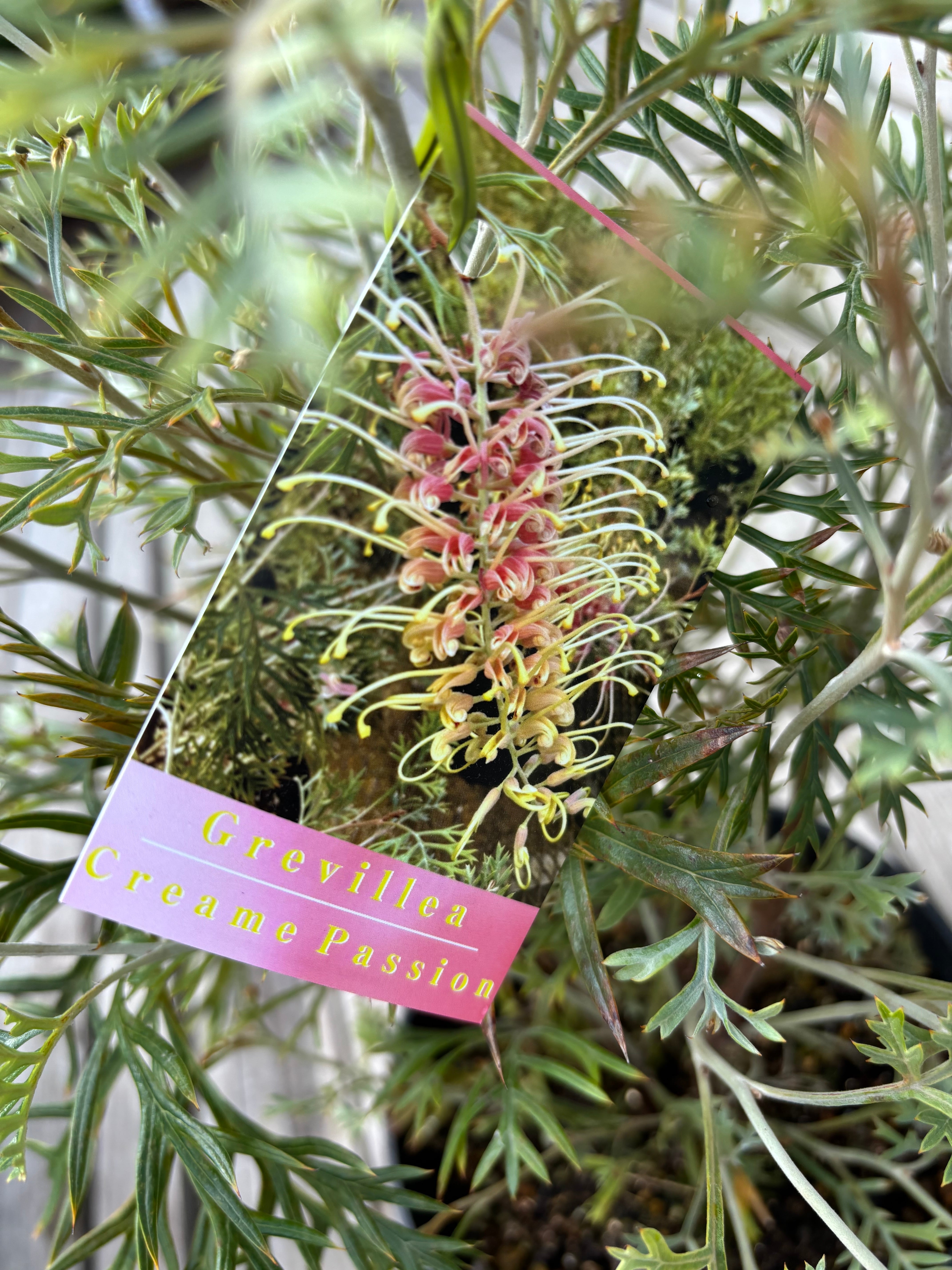 クリームパッションは、ピーチアンドクリームよりも耐寒性がありコンパクトサイズのグレビレアです^^四季咲きに近いので一年中楽しめます。