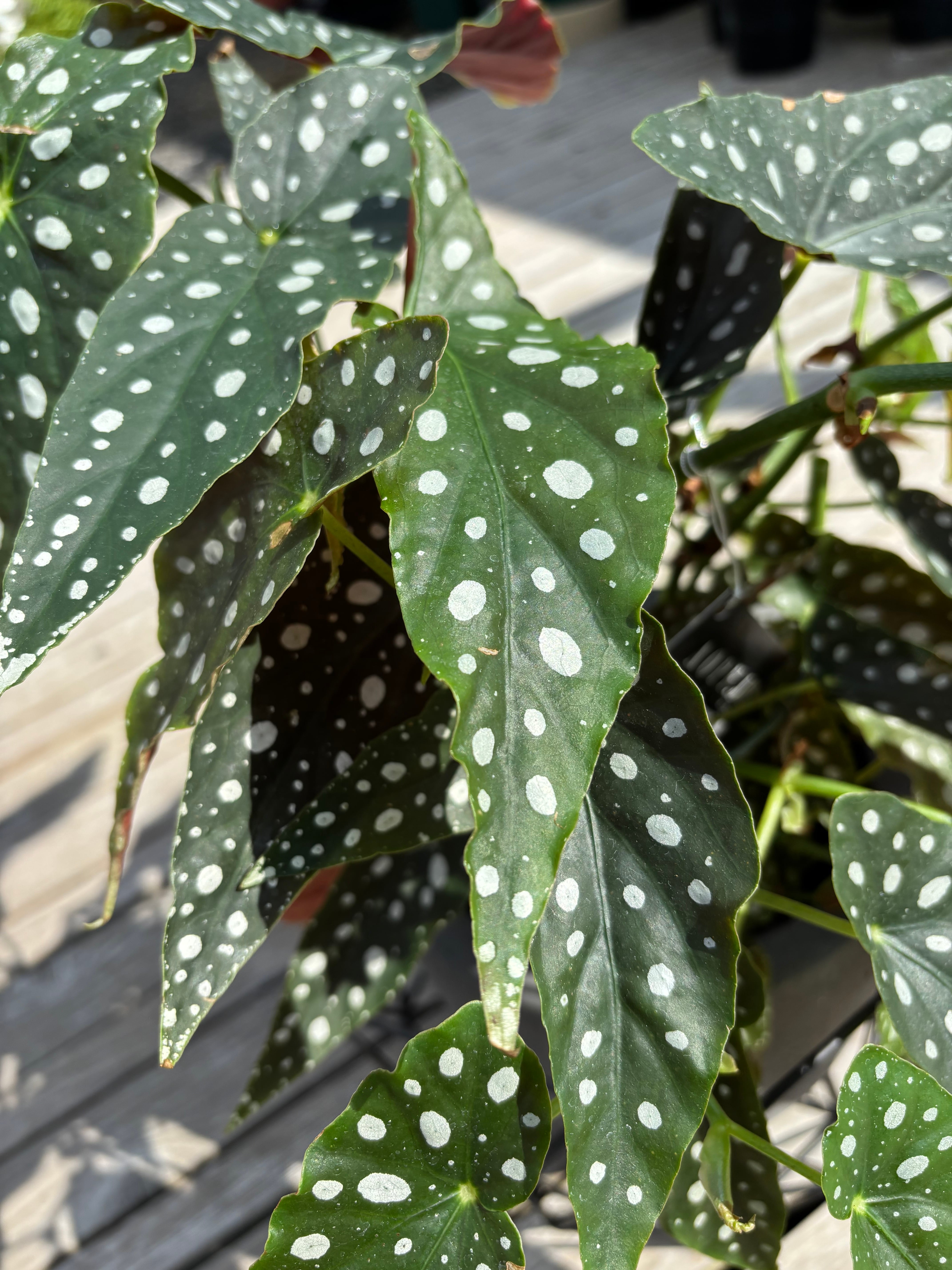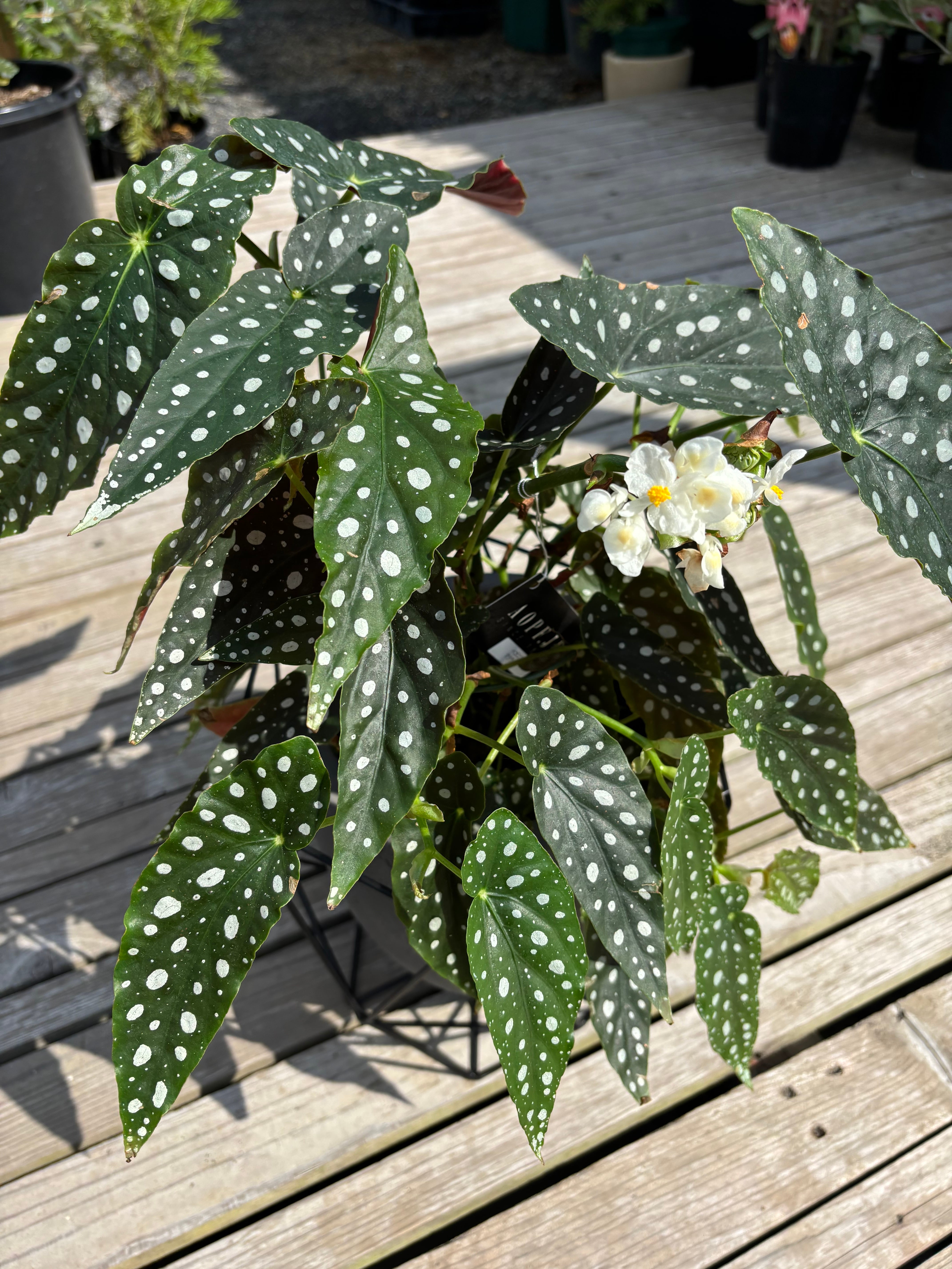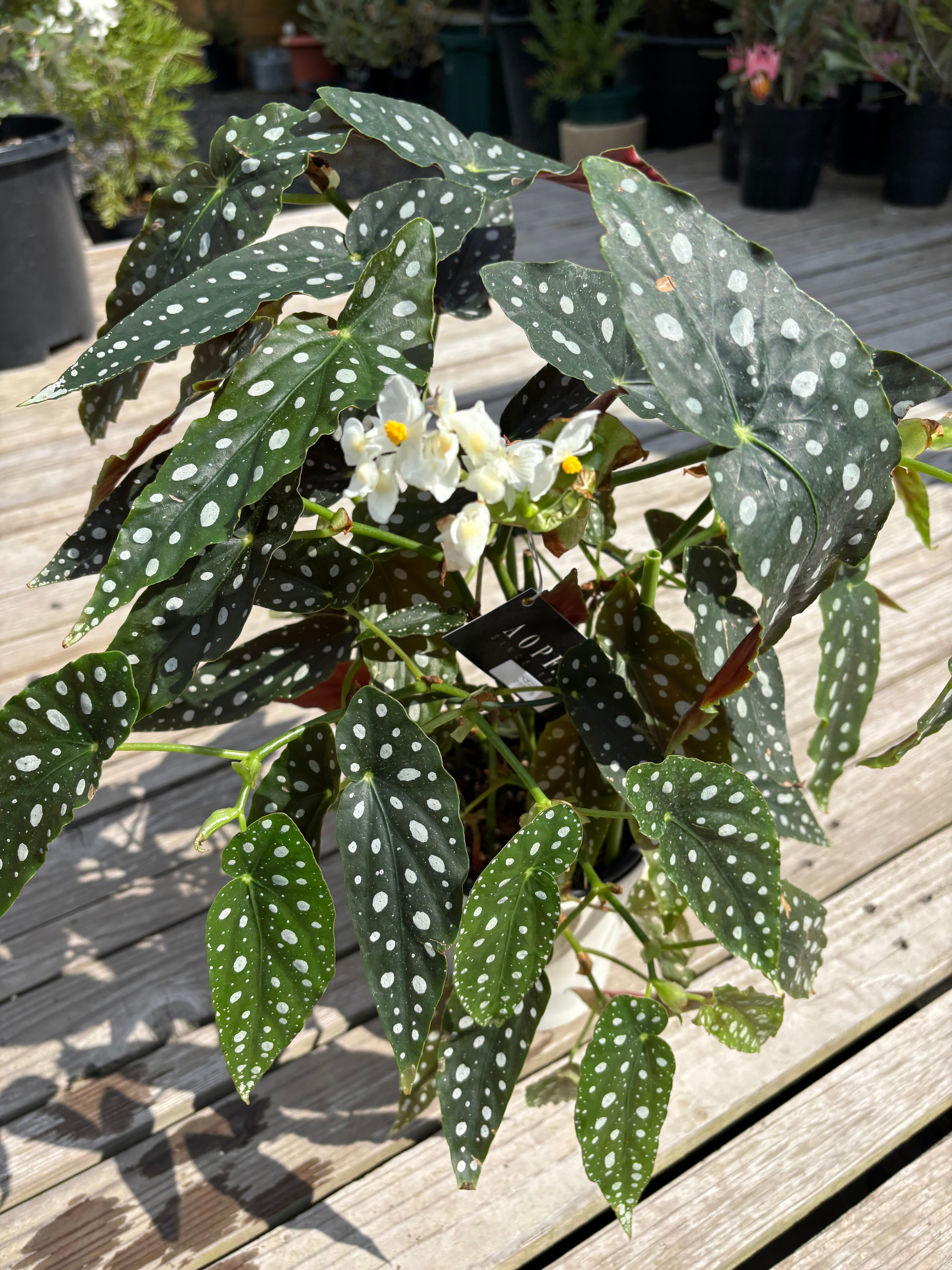 ドット柄の葉が個性的で人気のインテリアグリーンです。木立性のベゴニアです。