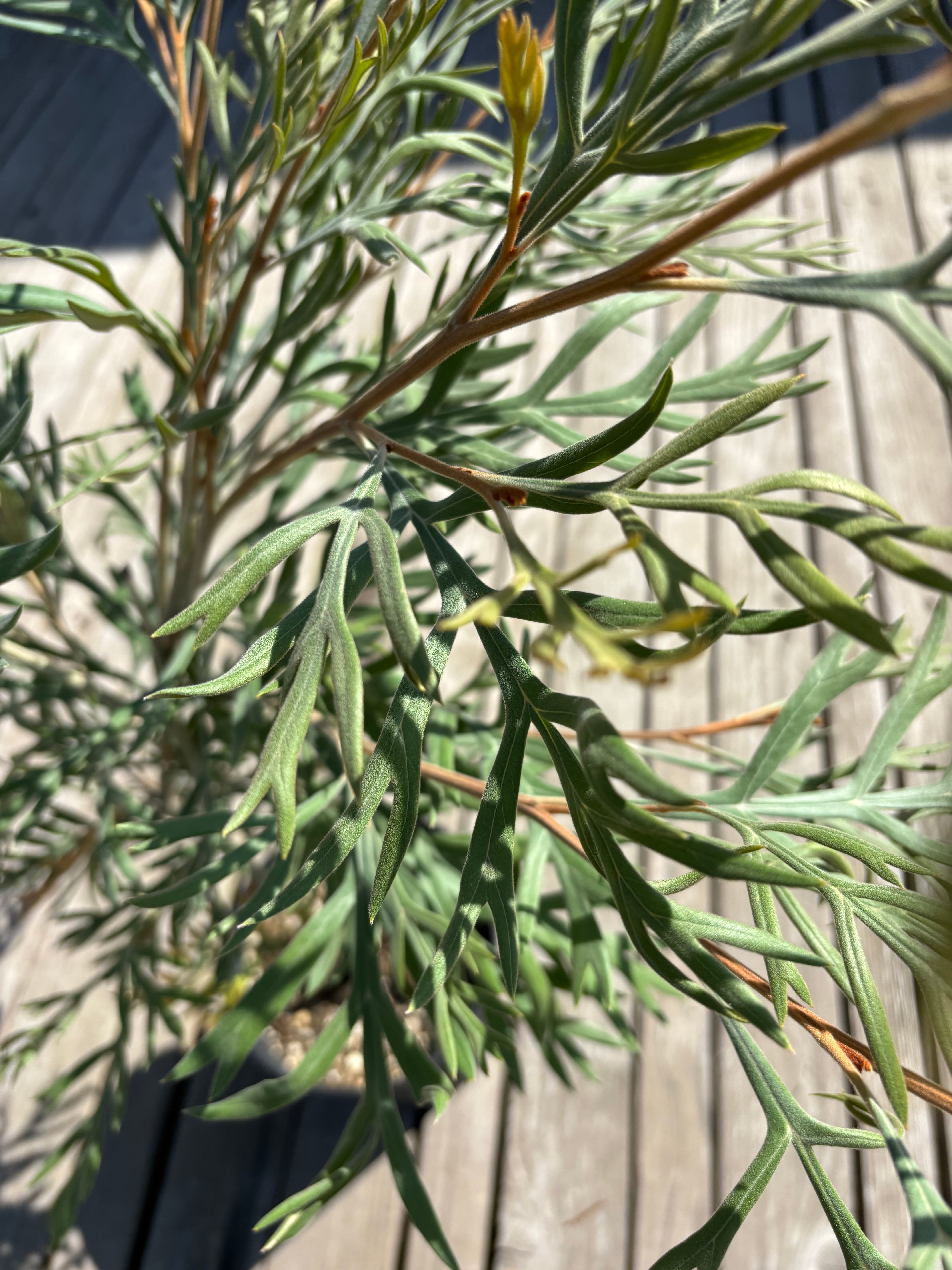 紫色のお花とシルバーがかった葉が美しいグレビレアです^^四季咲きのように一年中長く楽しめます。紫色のお花は珍しく全体的に高級感があり、なかなか出回らない品種です。