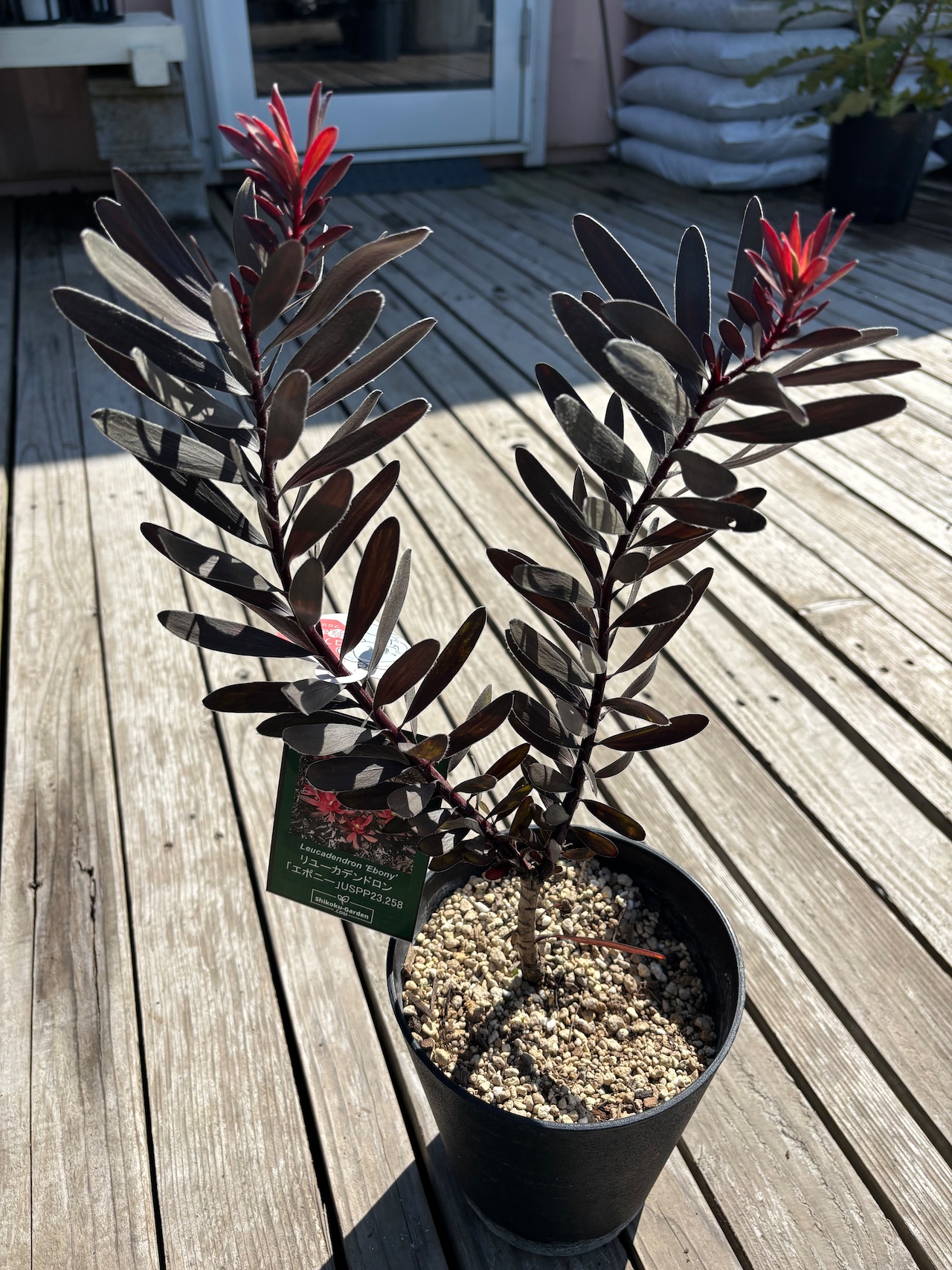 黒リューカデンドロンとも呼ばれ、なかなか出回らない希少品種です^^黒と赤のカラーがとてもカッコイイ!