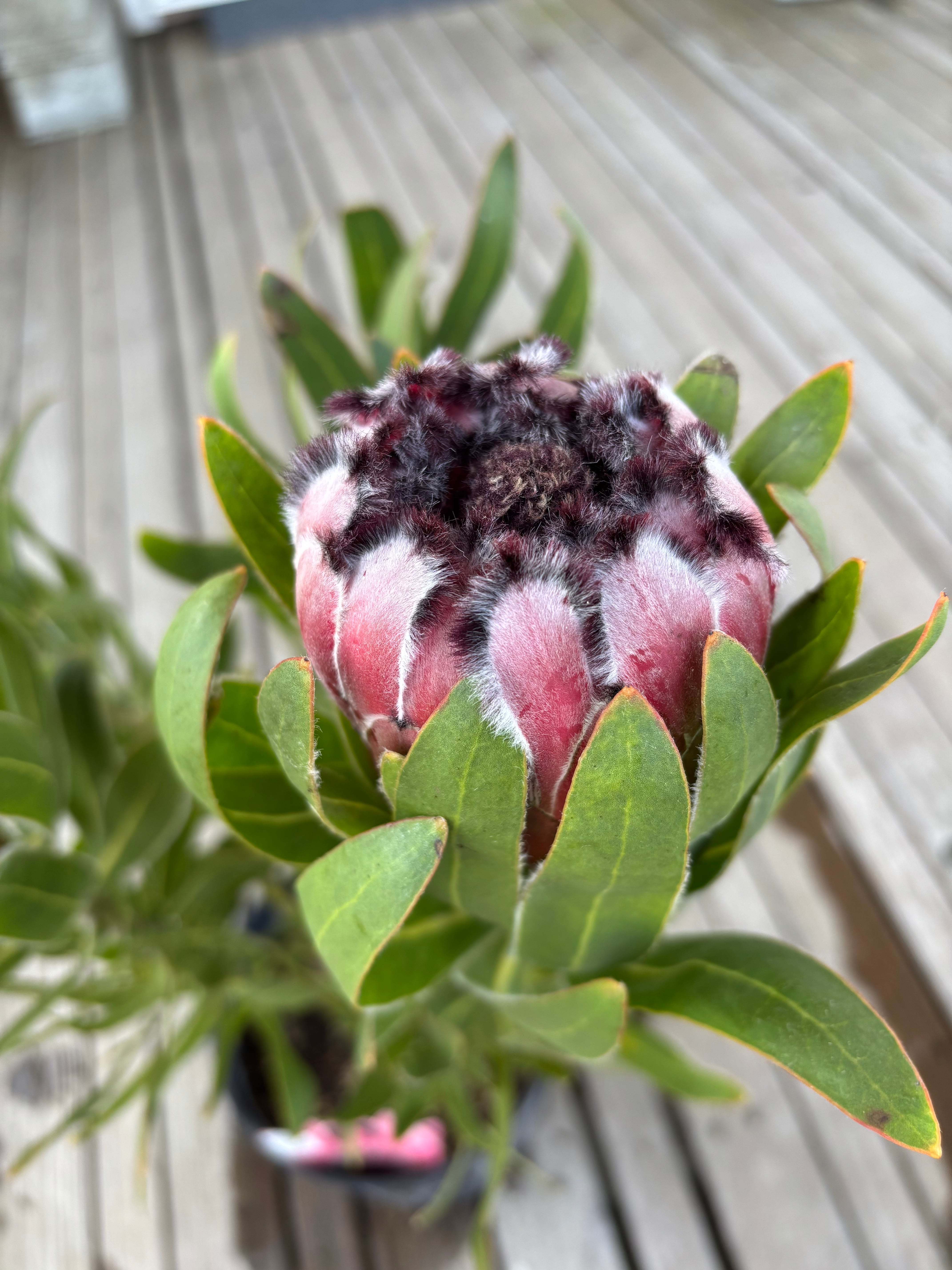 ピンク色のふわふわとした高級感のある花が咲くとても珍しいプロテアです^^