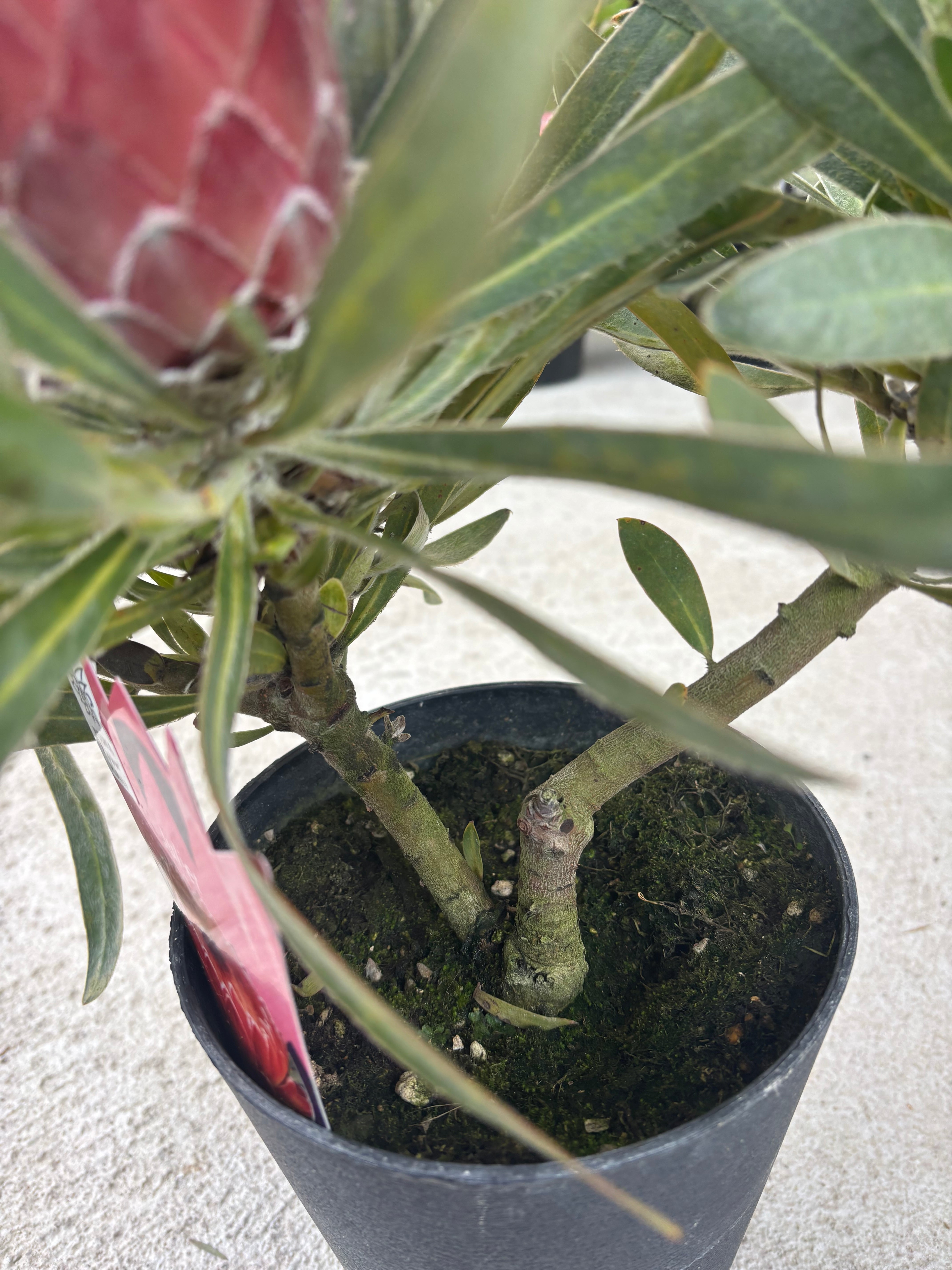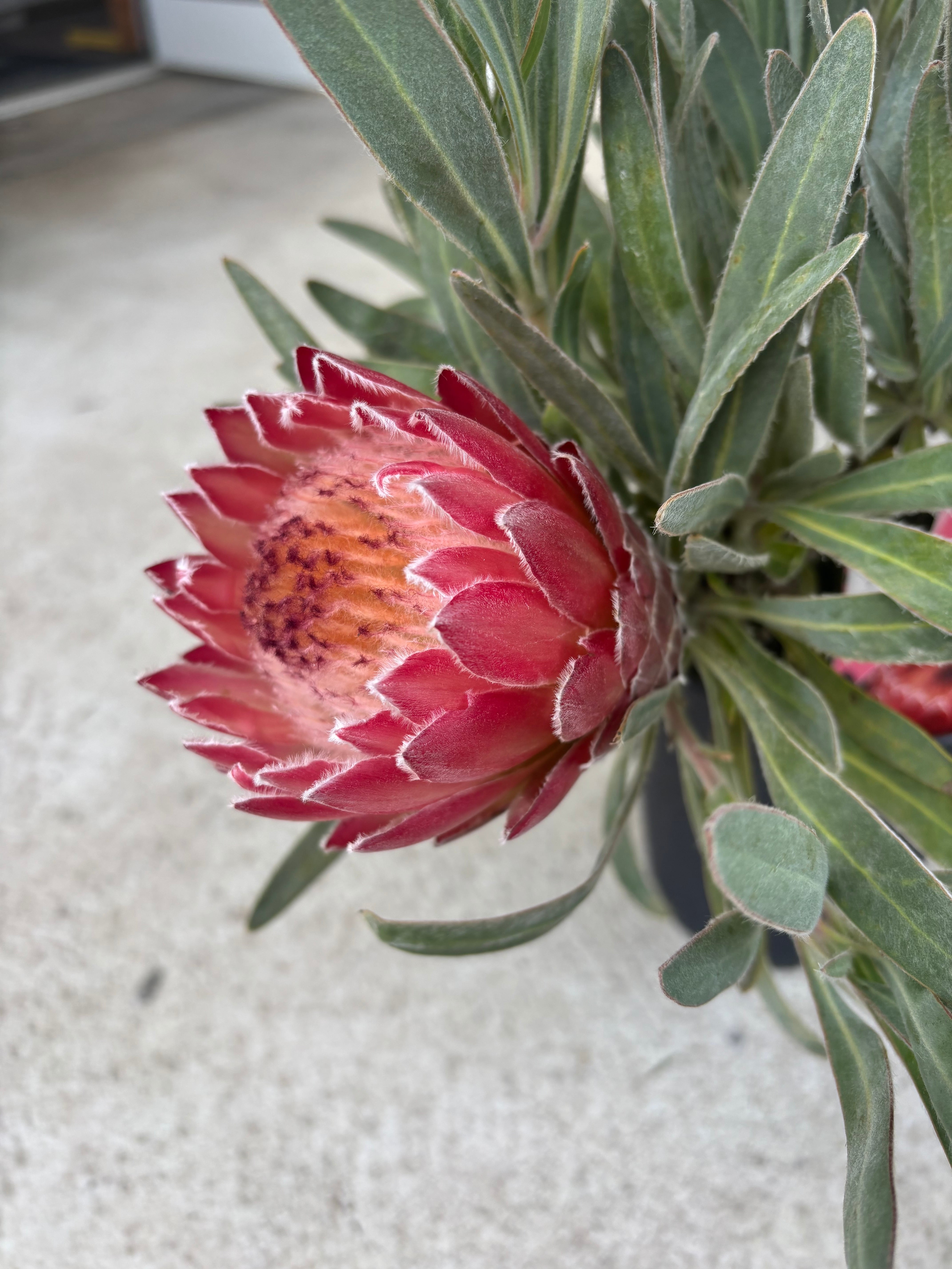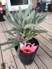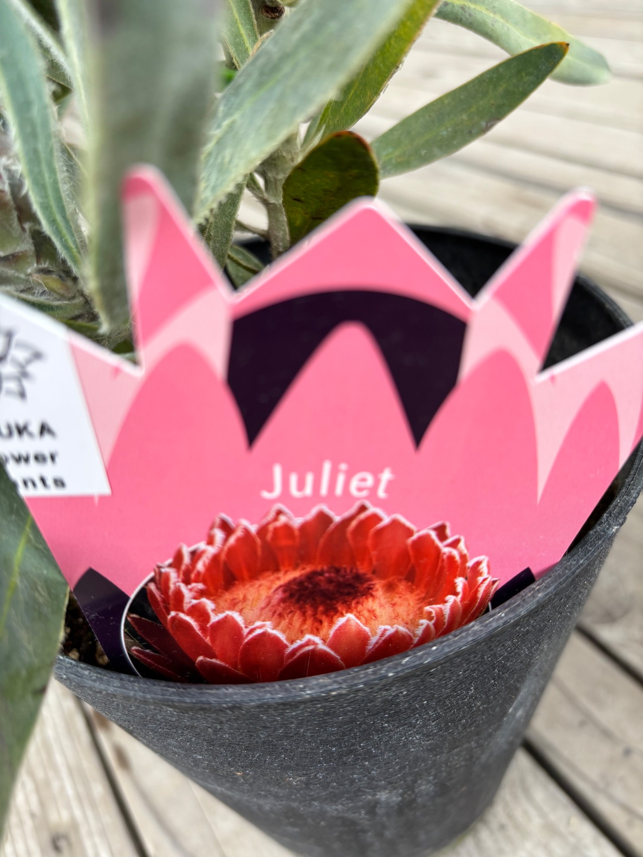 ジュリエットは、濃いピンク色の大きな花とシルバーがかった葉が美しくプロテアです。比較的コンパクトな品種です。この機会にぜひトライしてみてください^^