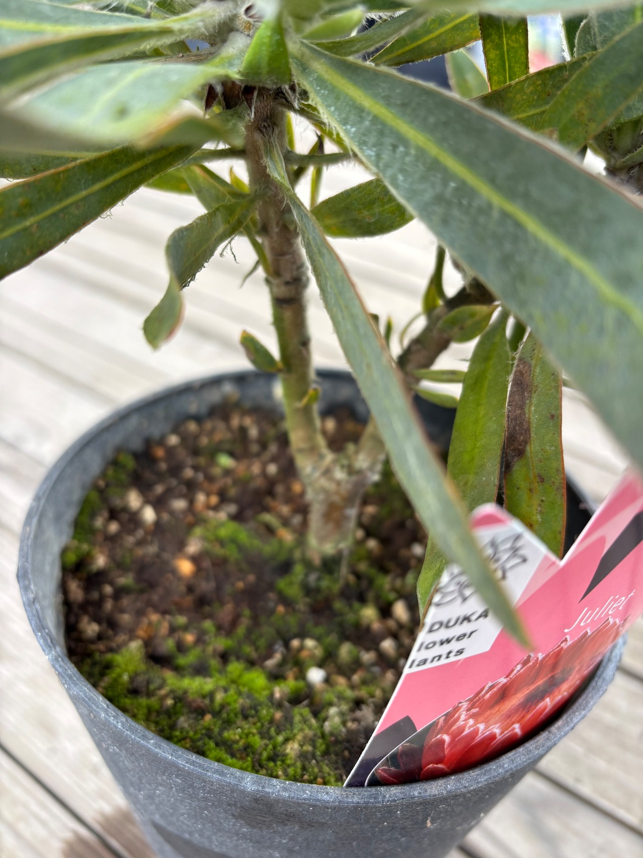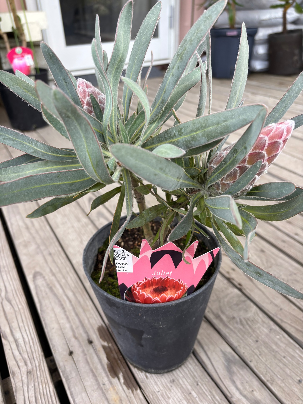 ジュリエットは、濃いピンク色の大きな花とシルバーがかった葉が美しくプロテアです。比較的コンパクトな品種です。この機会にぜひトライしてみてください^^