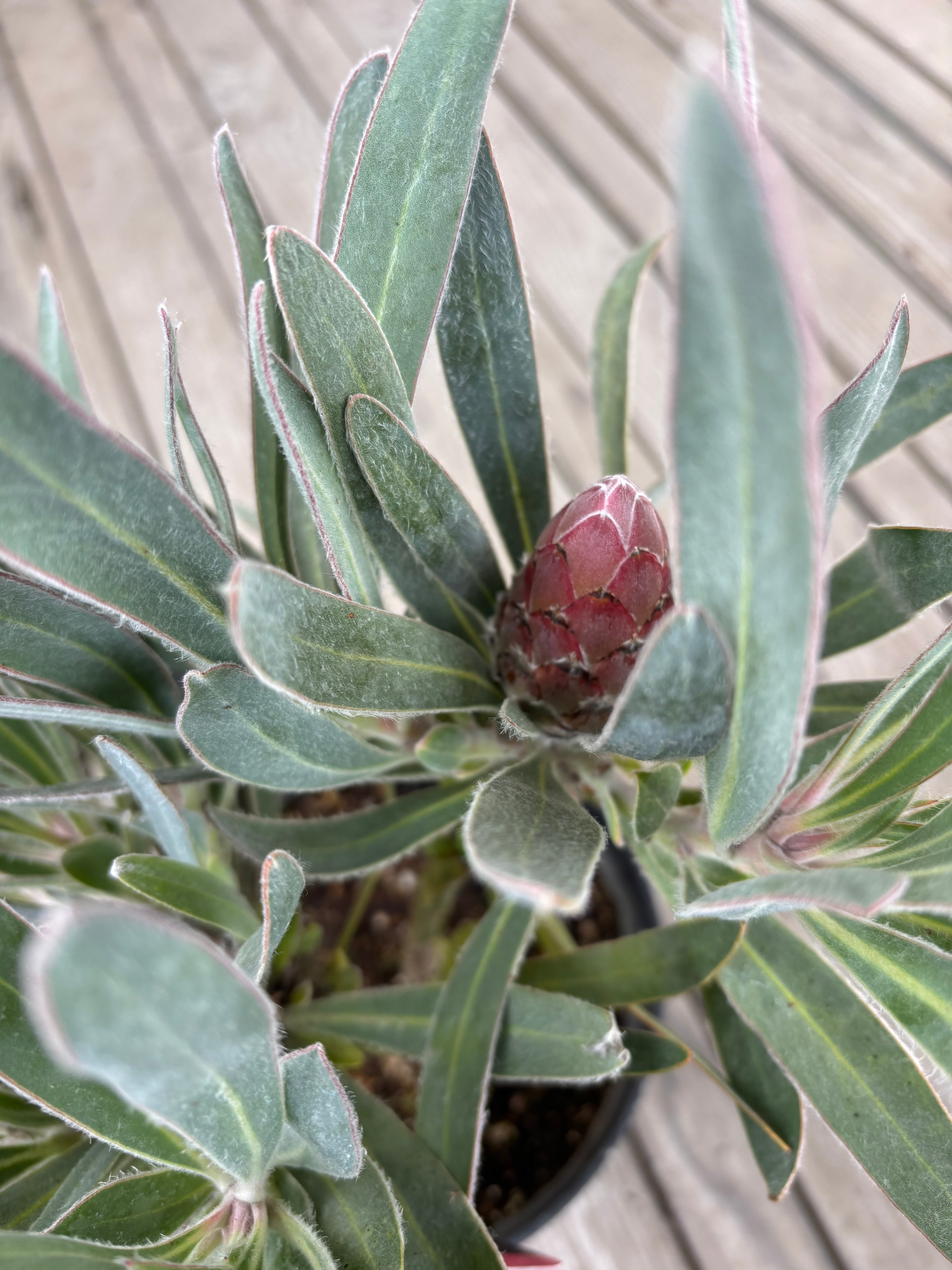 ジュリエットは、濃いピンク色の大きな花とシルバーがかった葉が美しくプロテアです。比較的コンパクトな品種です。この機会にぜひトライしてみてください^^