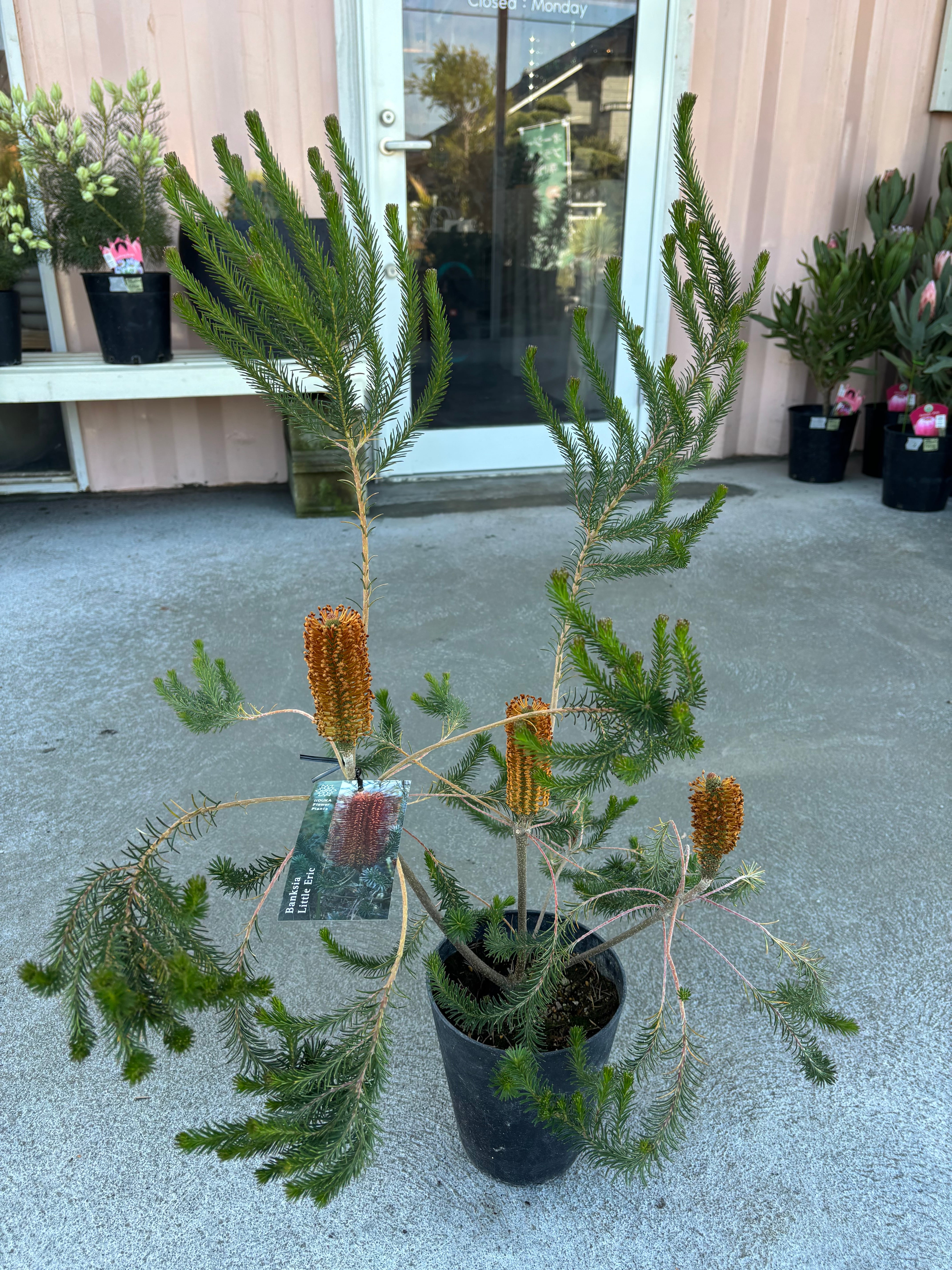 ヒースバンクシアの矮性品種です。ヒースよりも寒さに強く花付きも良いです。最大2m程でコンパクト品種となります!あまり出回らない品種なので、ぜひトライしてみてください^^