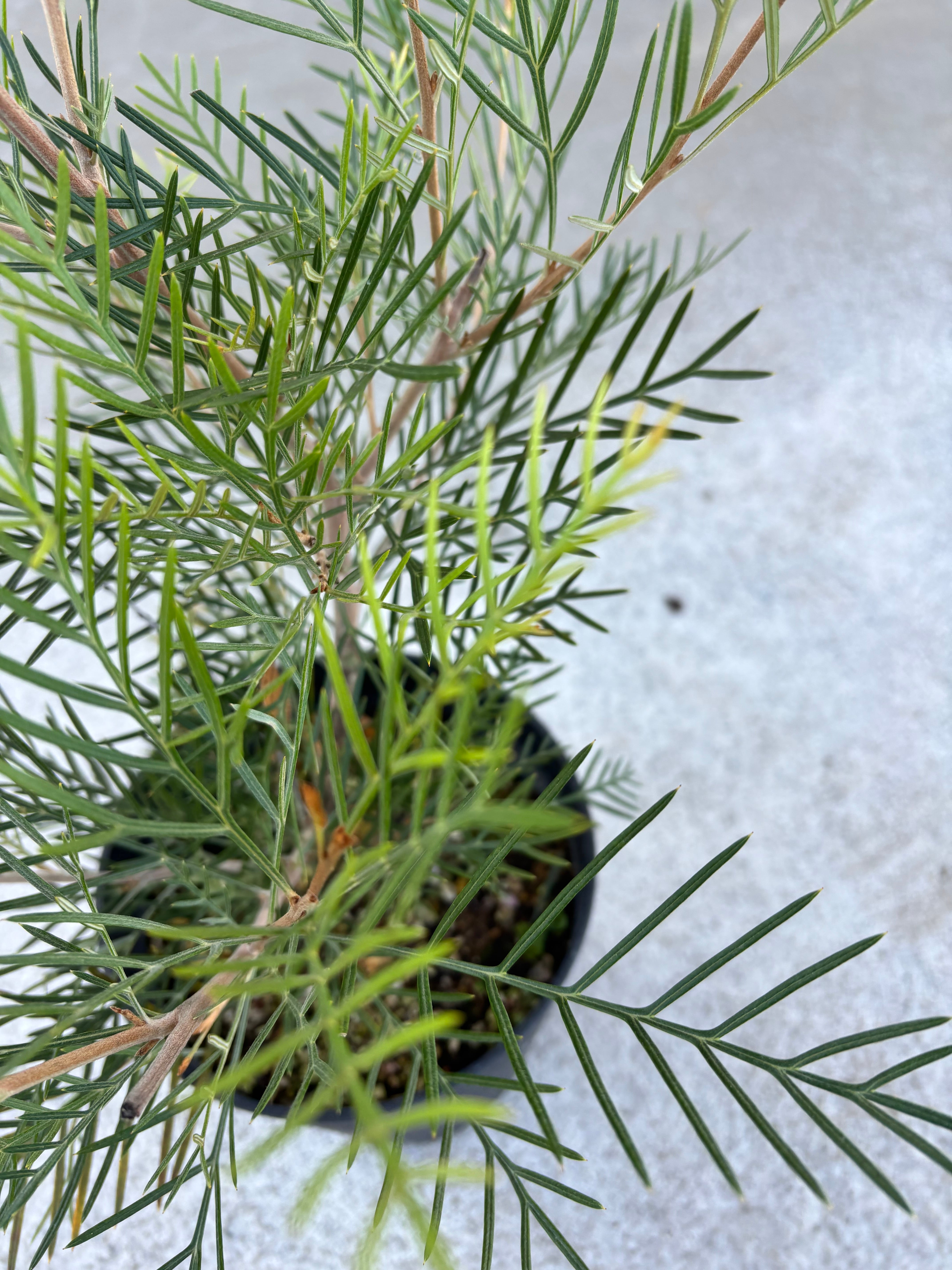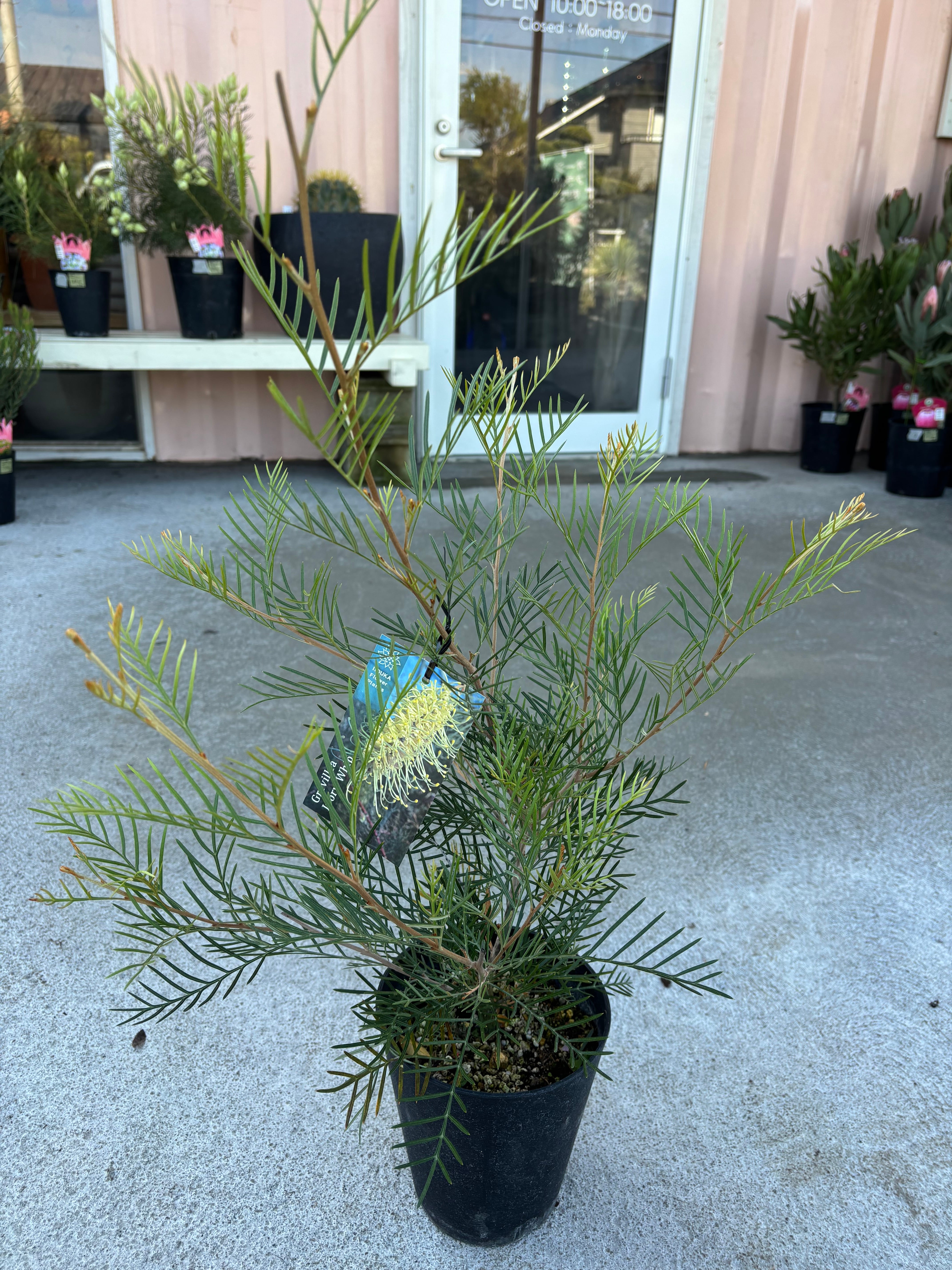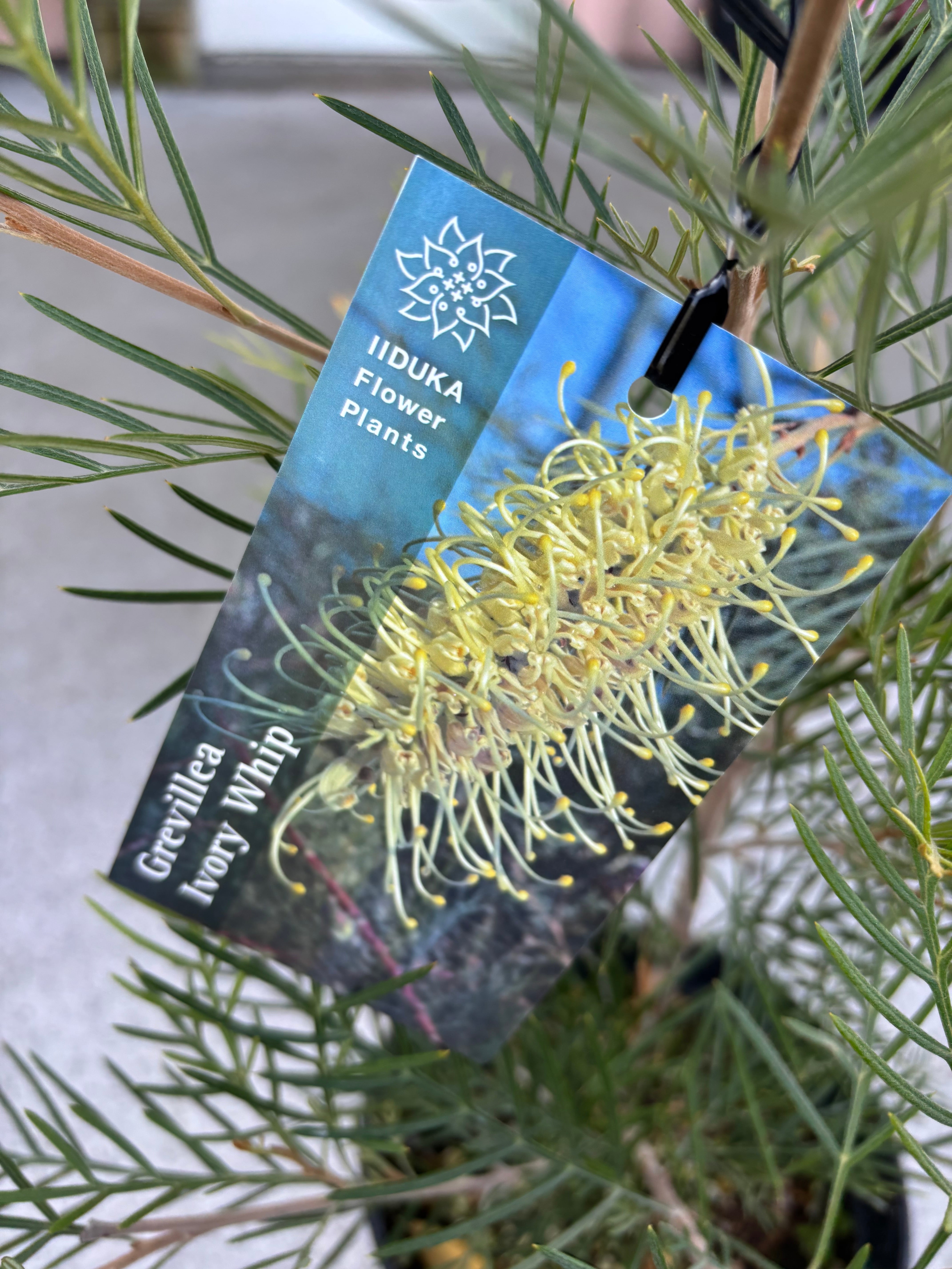 アイボリー色の大輪系のお花をたくさん咲かせてくれます。樹高は最大1.5mなのでコンパクトに育つグレビレアです。