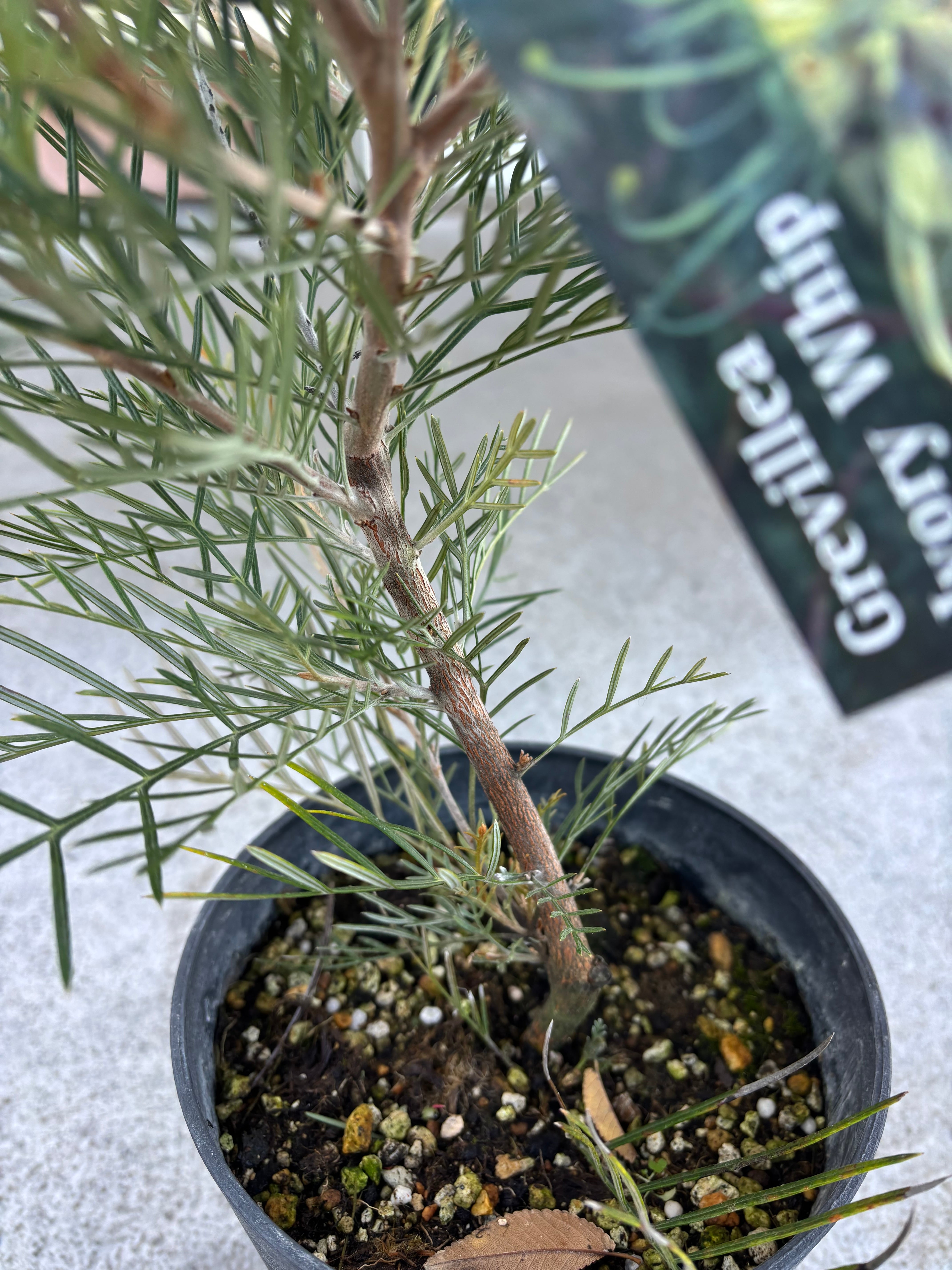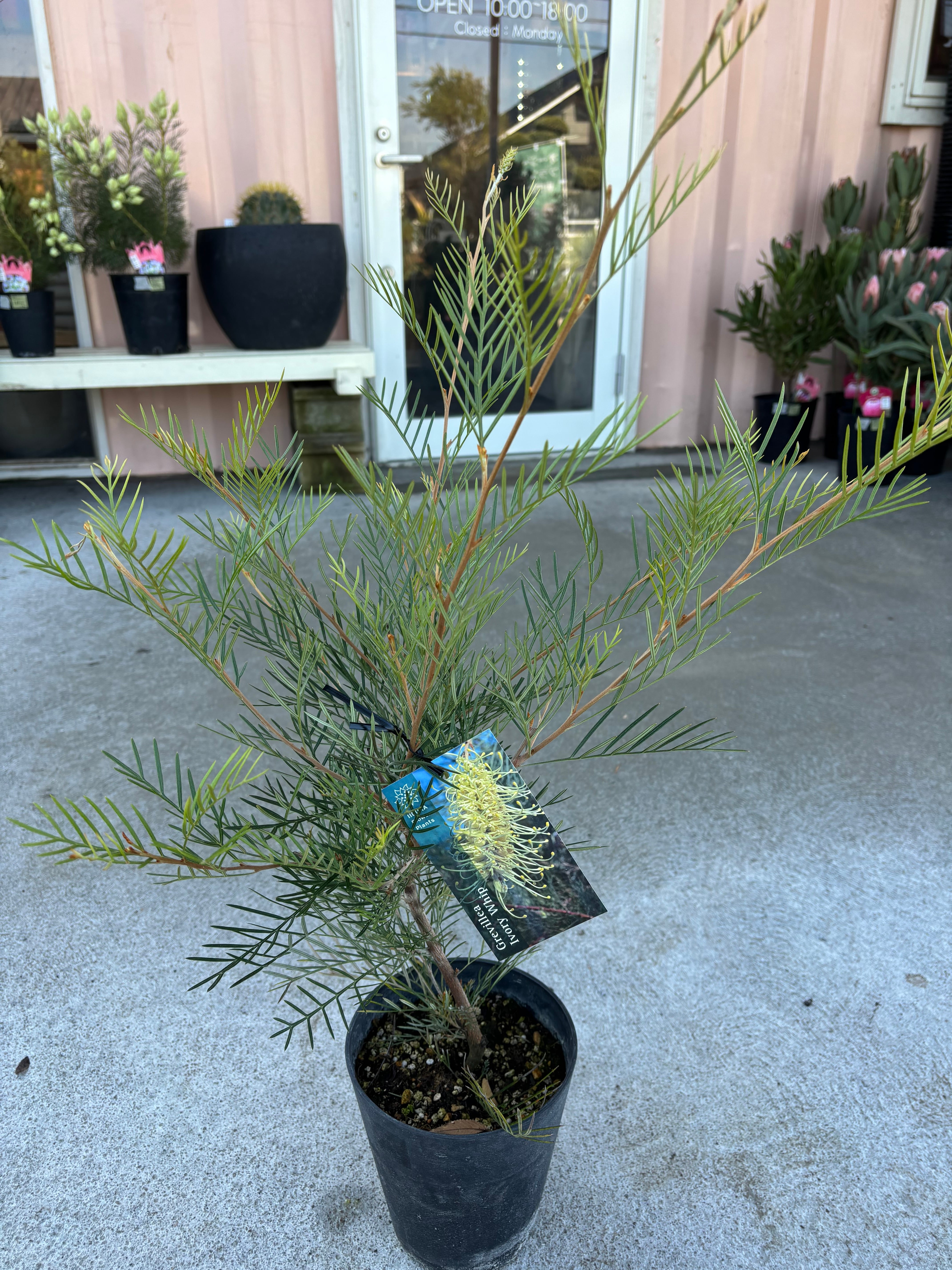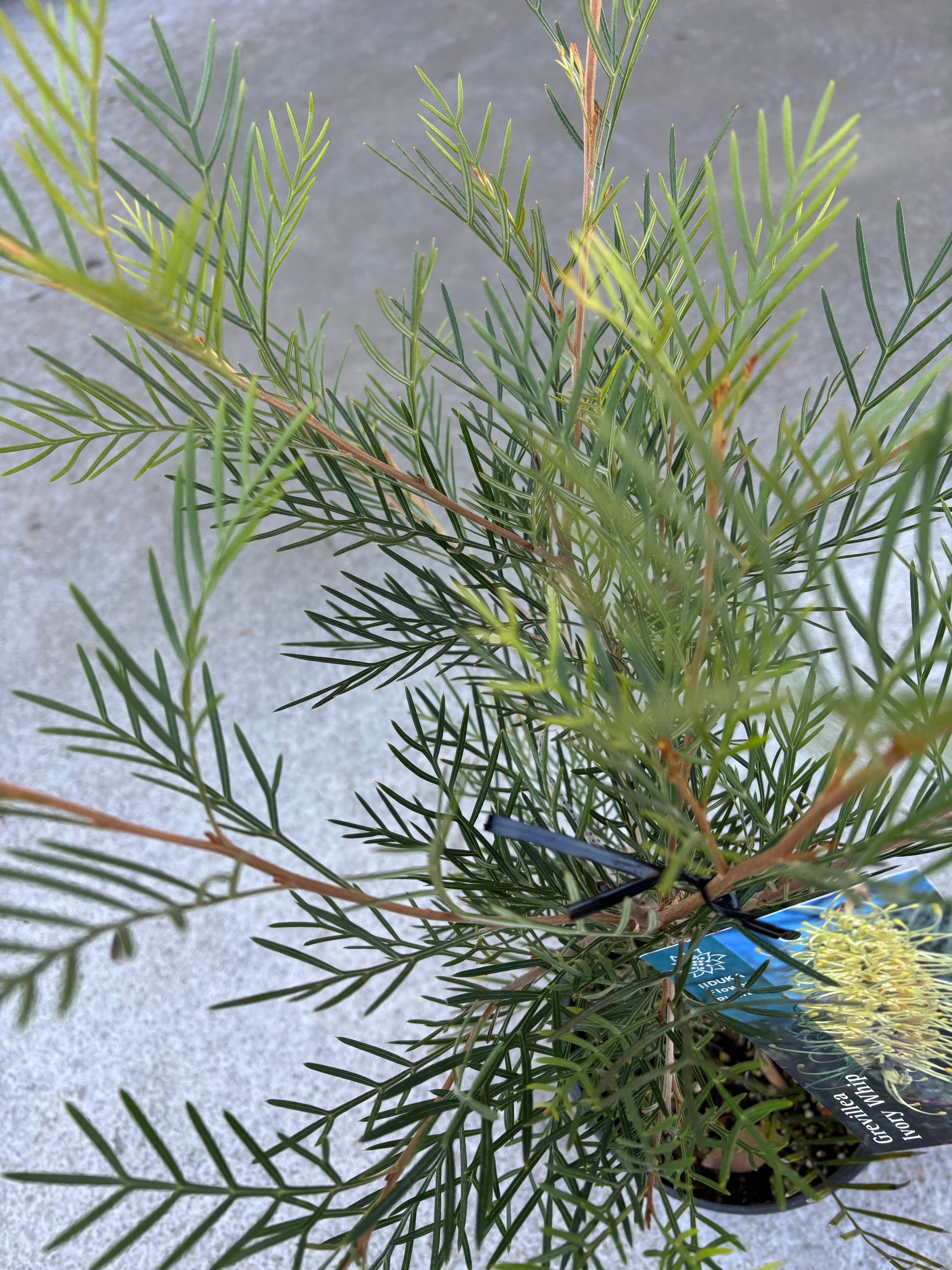アイボリー色の大輪系のお花をたくさん咲かせてくれます。樹高は最大1.5mなのでコンパクトに育つグレビレアです。