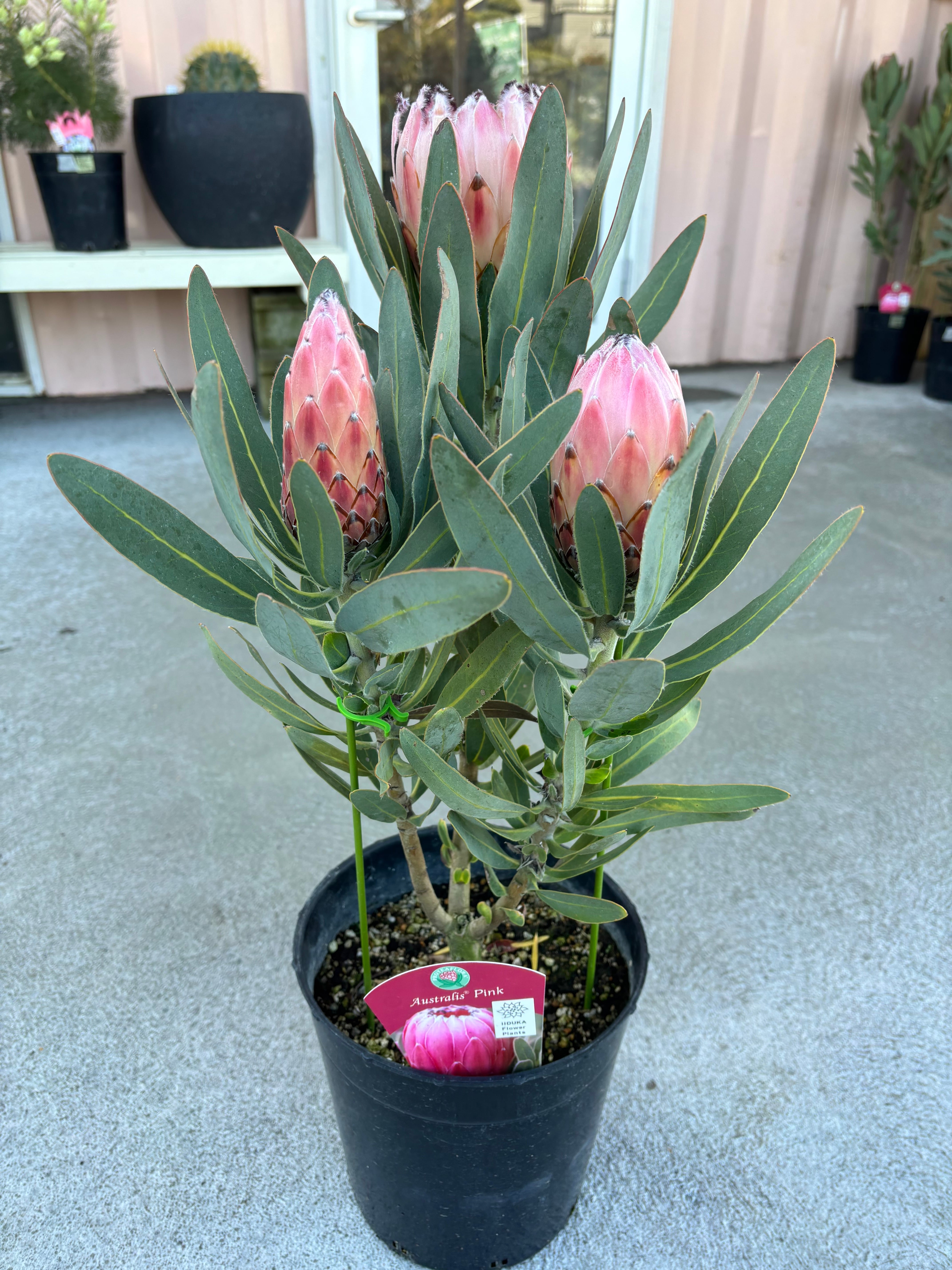 プロテアオーストラリスピンクは、ピンク色の高級感あるお花を咲かすプロテアです。気候が合えば、真冬以外年間を通して繰り返し花をつけます^^