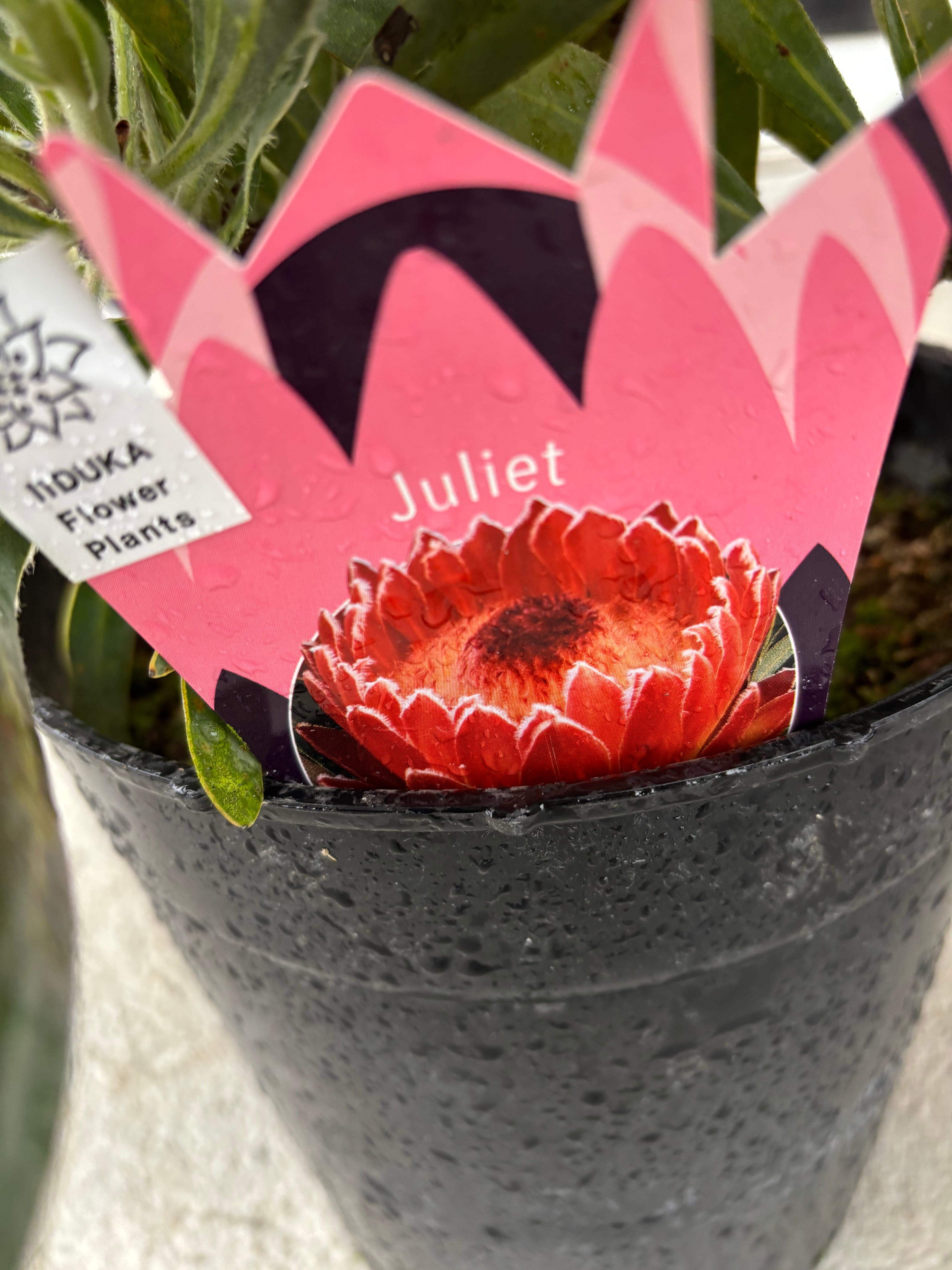 ジュリエットは、濃いピンク色の大きな花とシルバーがかった葉が美しくプロテアです。比較的コンパクトな品種です。この機会にぜひトライしてみてください^^