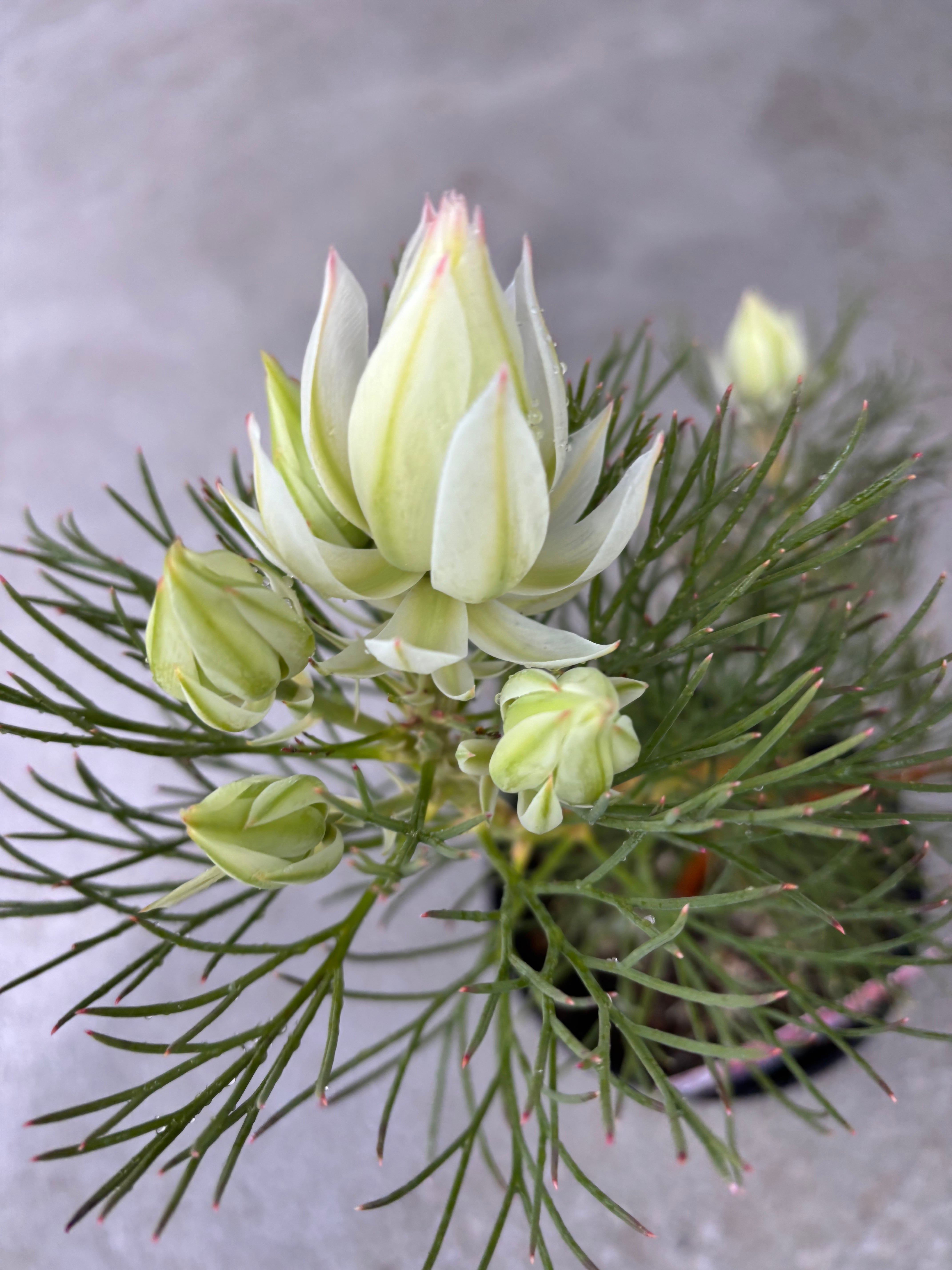 とても美しい白いお花を咲かせてくれます^^ダイアナ妃のブーケにも使われ、ブラッシングブライドは頬を染める花嫁と意味があります。花持ちがよく長く楽しめます!