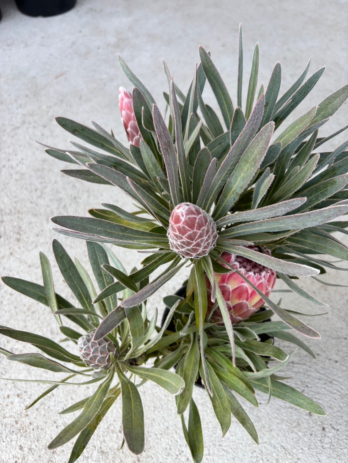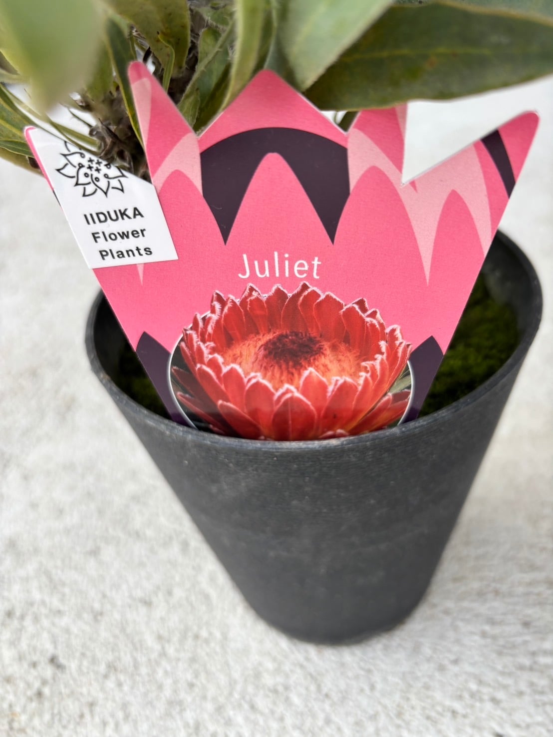 ジュリエットは、濃いピンク色の大きな花とシルバーがかった葉が美しくプロテアです。比較的コンパクトな品種です。この機会にぜひトライしてみてください^^