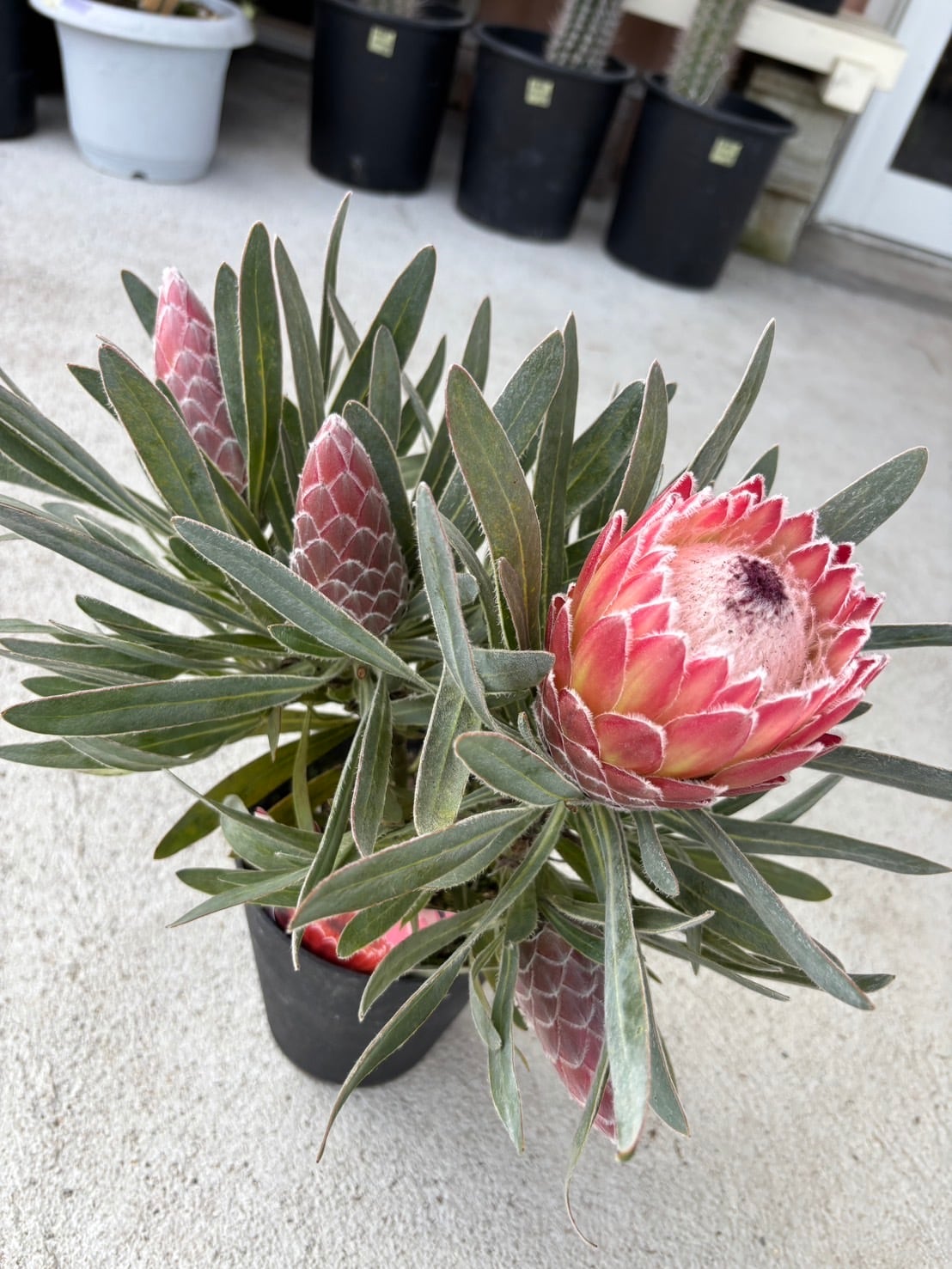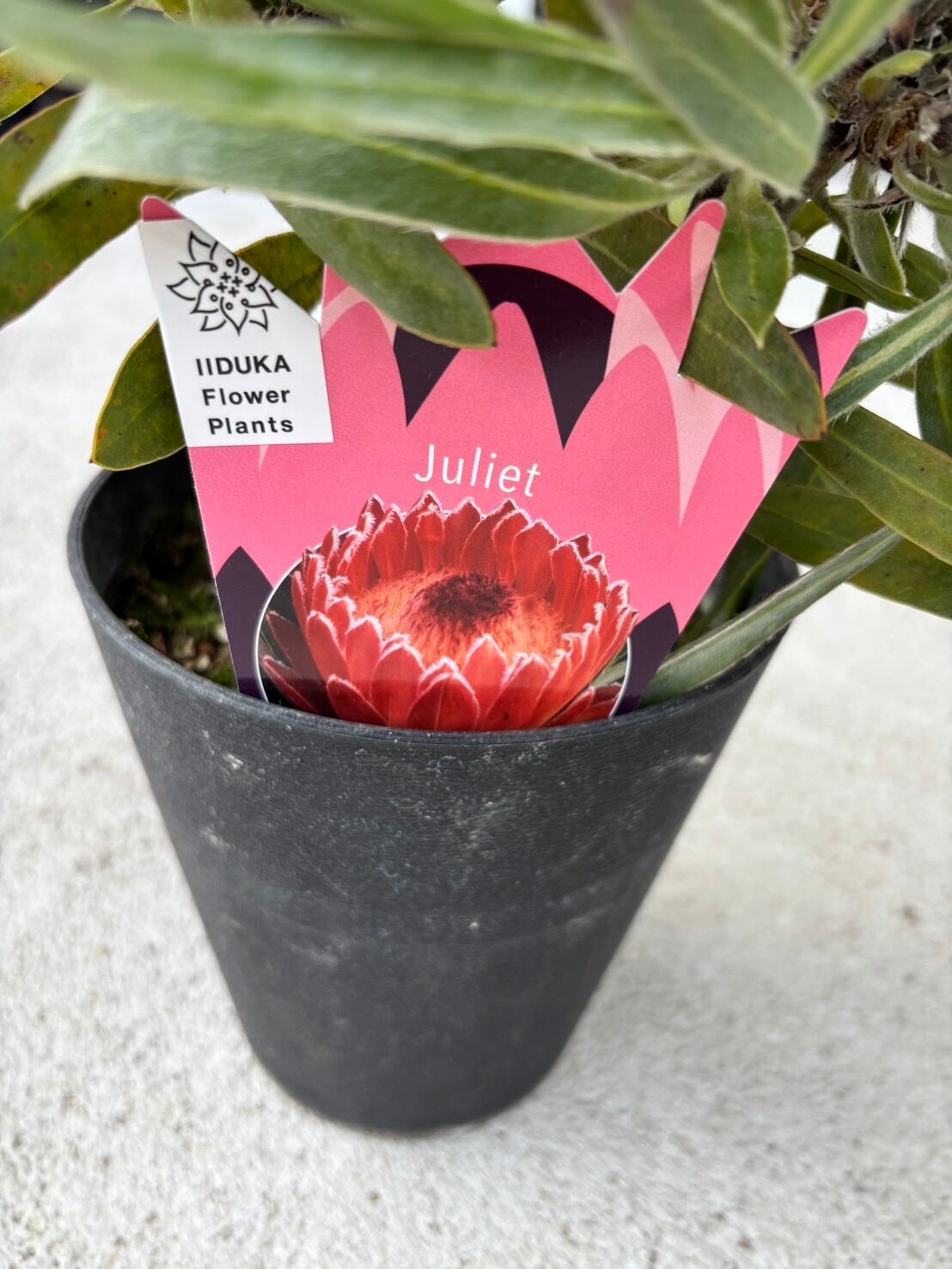 ジュリエットは、濃いピンク色の大きな花とシルバーがかった葉が美しくプロテアです。比較的コンパクトな品種です。この機会にぜひトライしてみてください^^