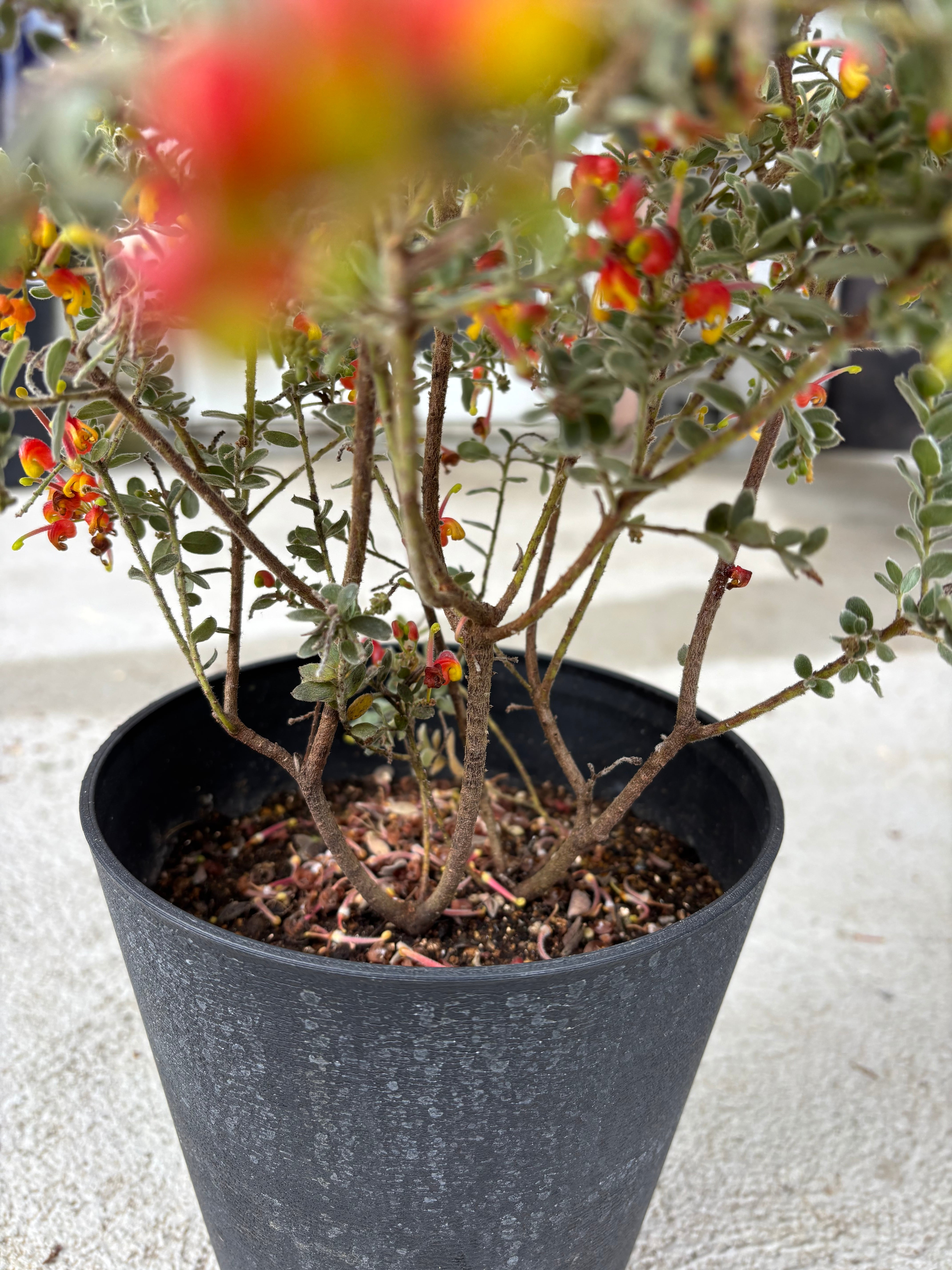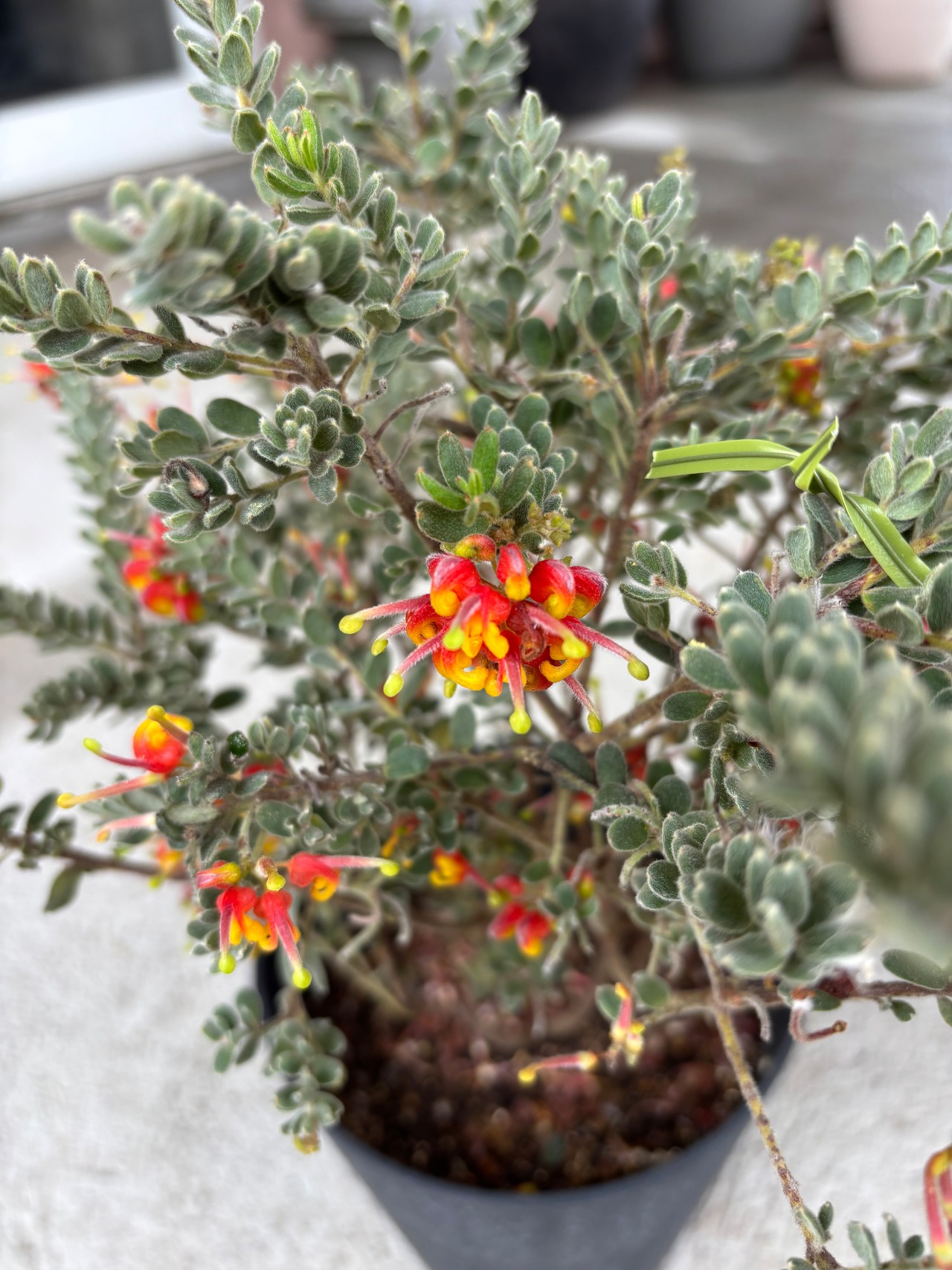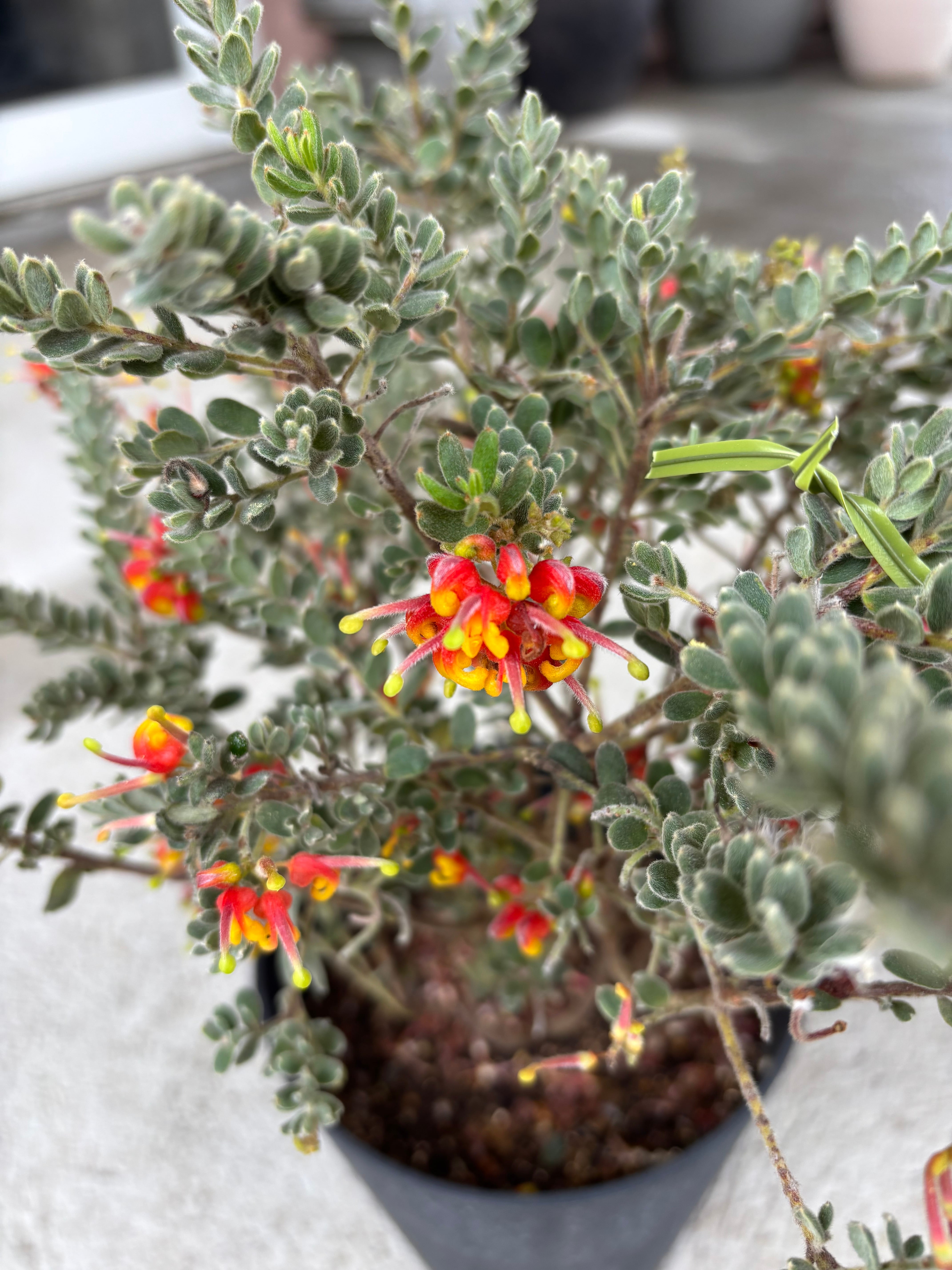 赤と黄色のお花が可愛いグレビレア^^葉っぱもとてもユニークです。
