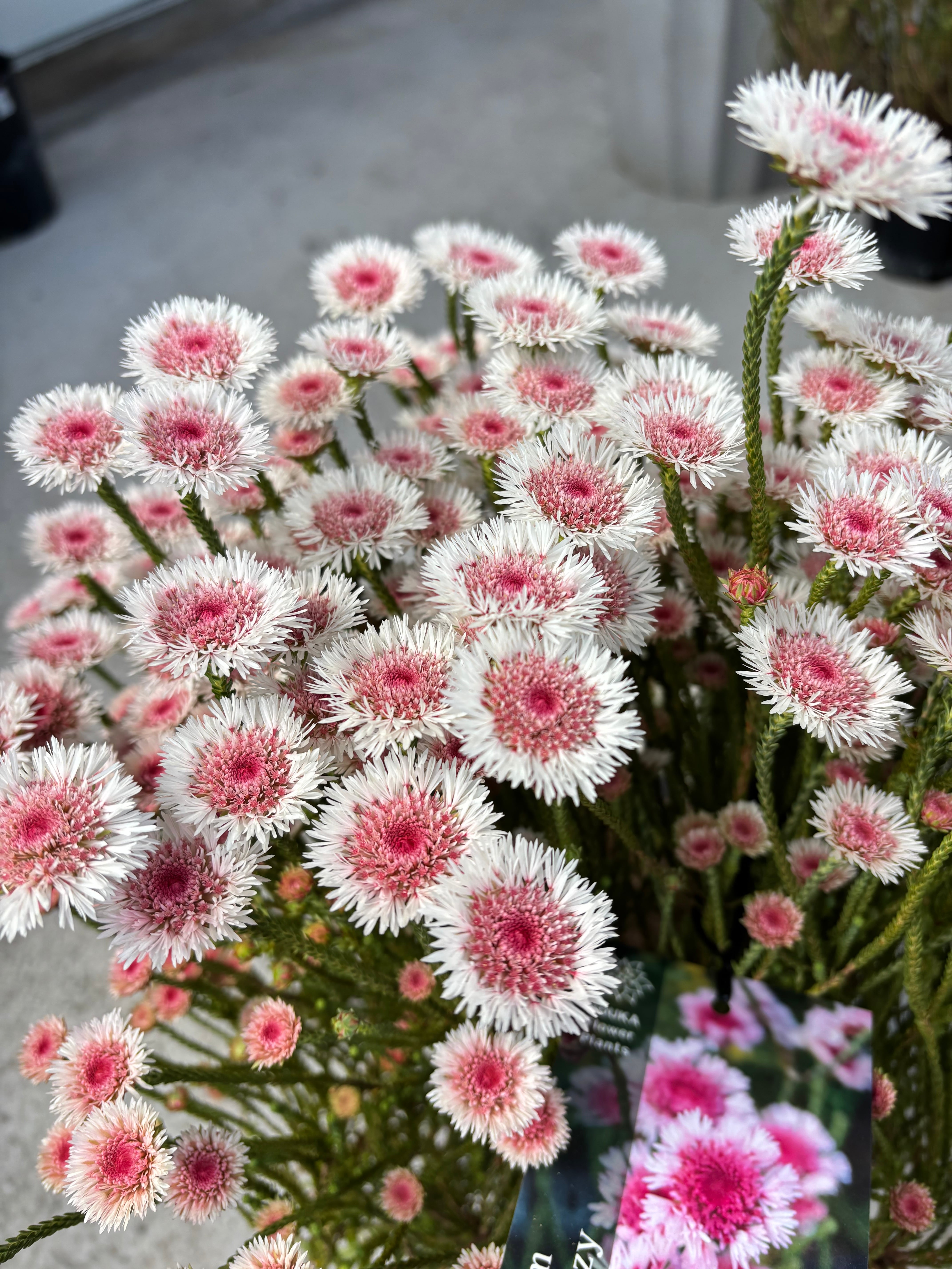 個性的に伸びた枝咲きになんとも可愛い白とピンクのツートーンのお花を咲かせます^^