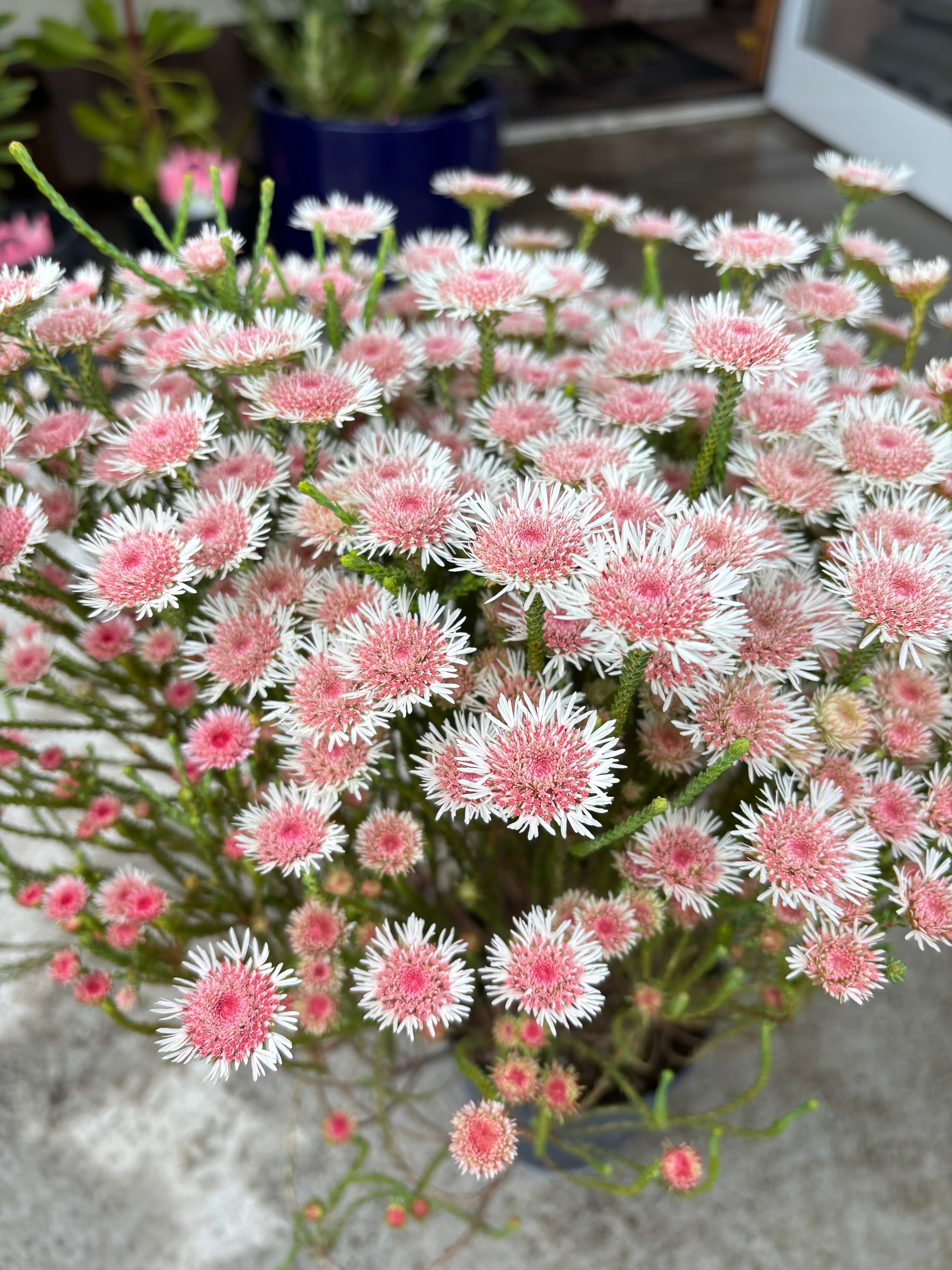 デージーやマーガレットのような愛らしいピンクの花を咲かせる常緑低木です。