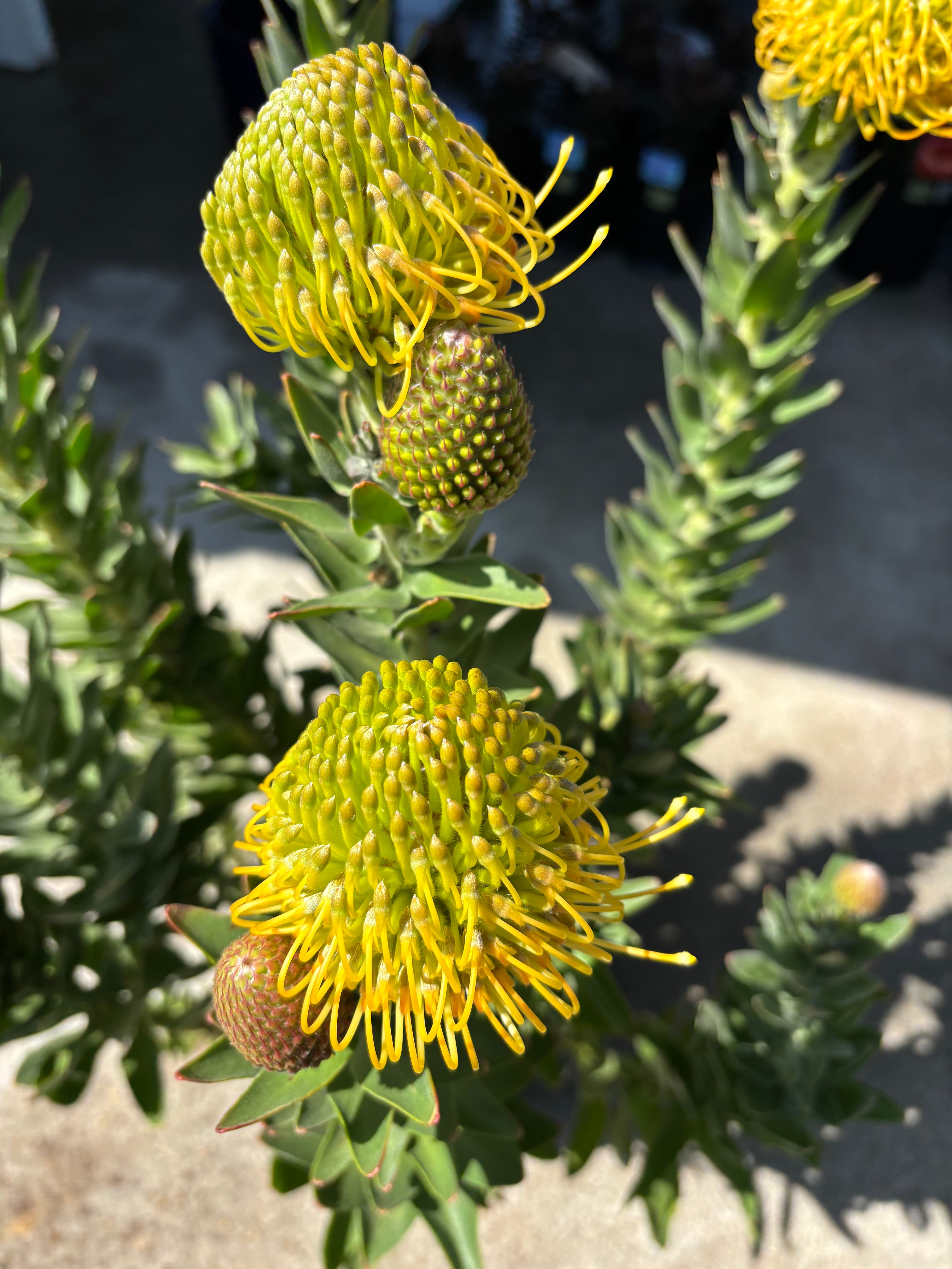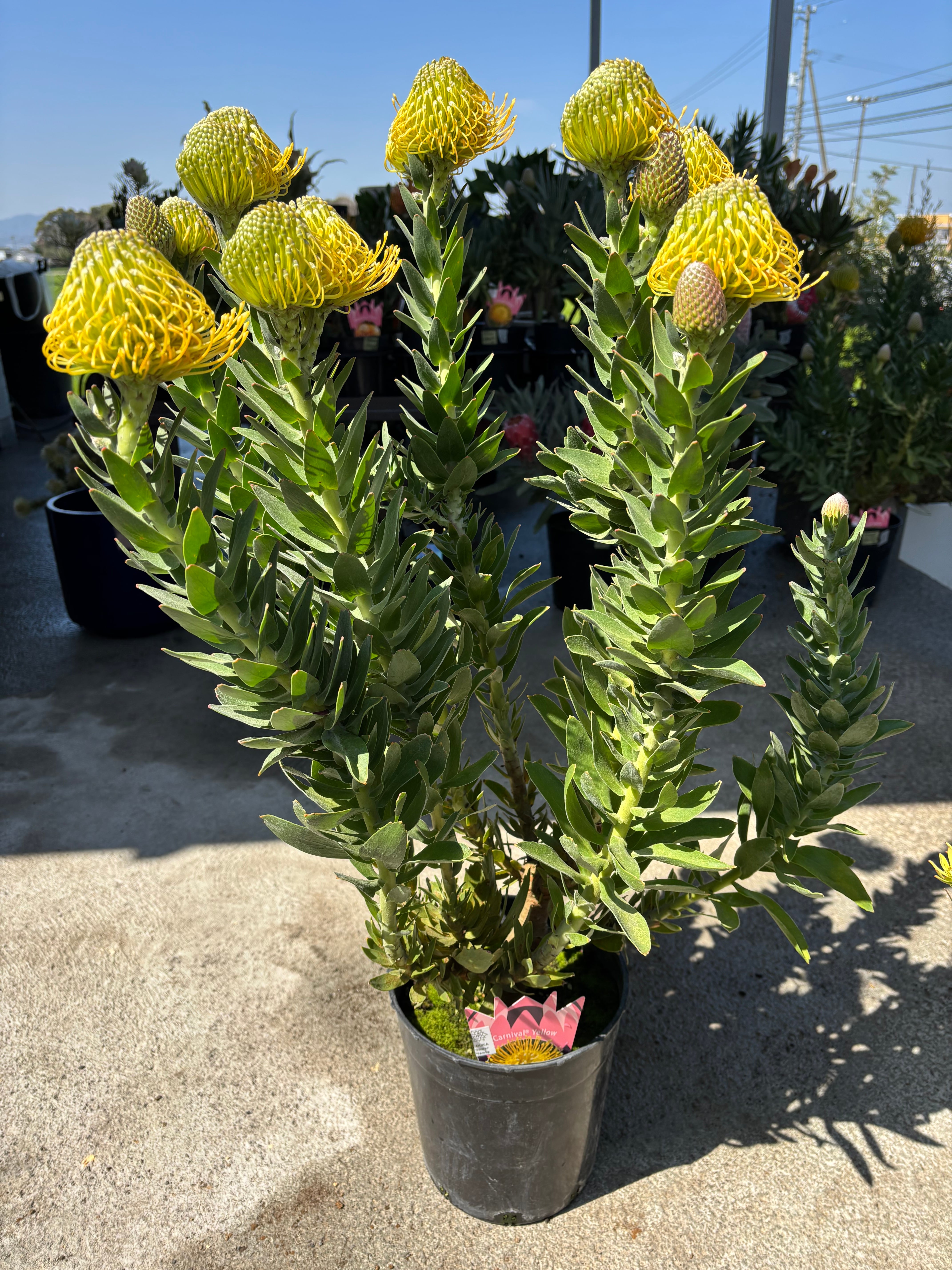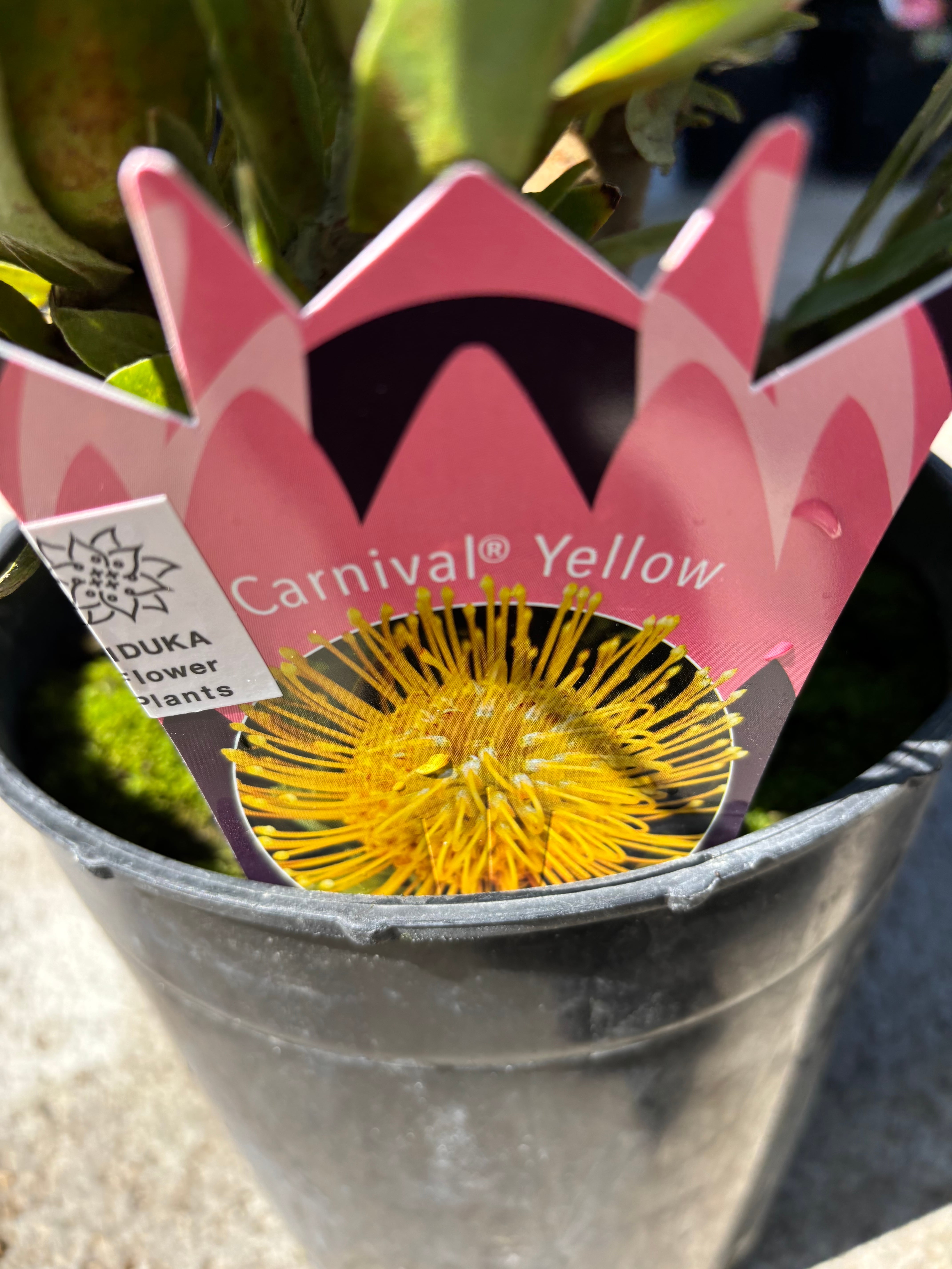 切り花でも人気の高いリューコスペルマムは、ピンクッションの名で親しまれており、個性的な花は非常に持ちがよく開花から3週間程美しい状態を保ちます^^カーニバルイエローはレッドに比べ成長が遅く、国内での大型開花株は希少です!