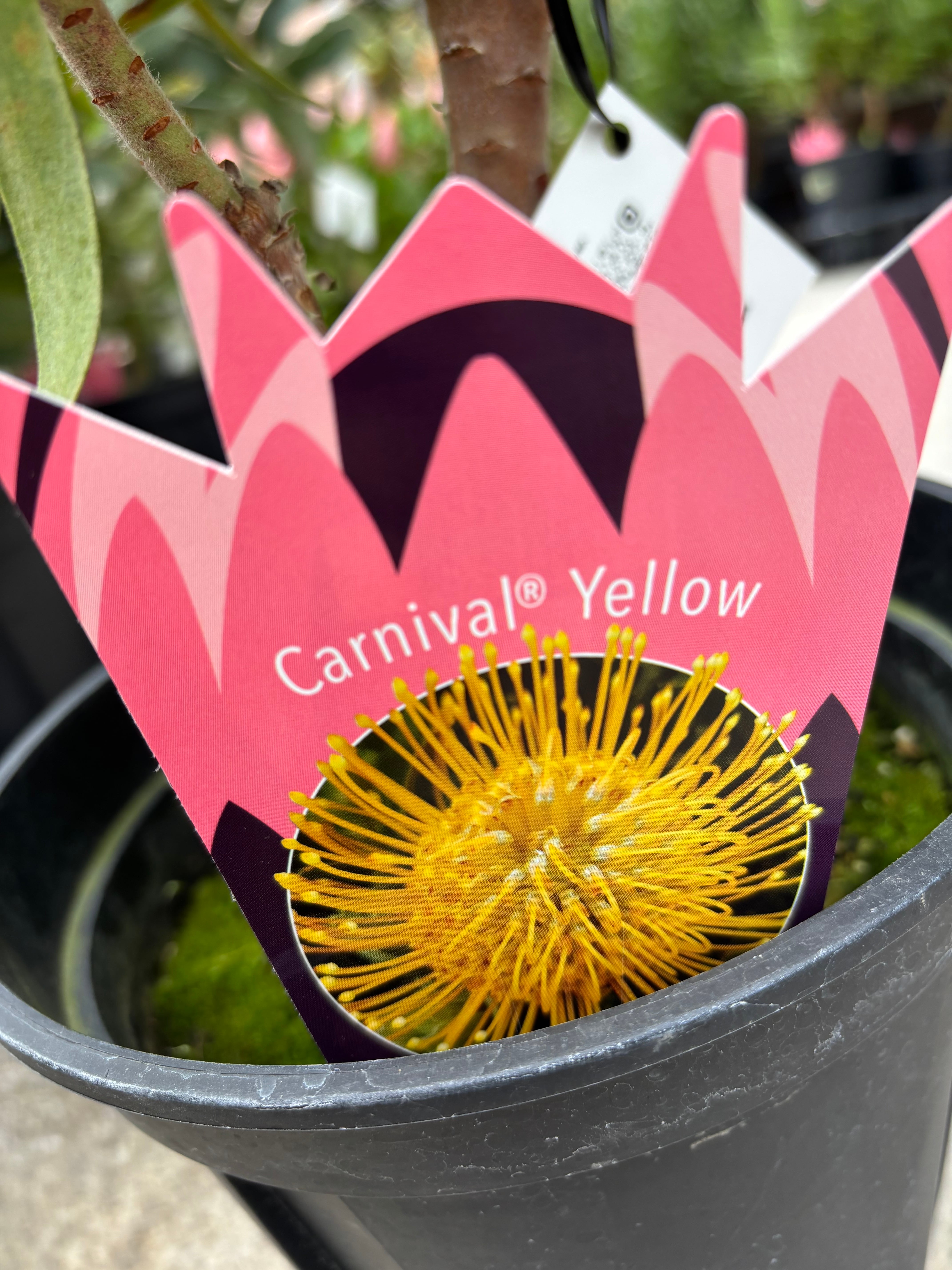 切り花でも人気の高いリューコスペルマムは、ピンクッションの名で親しまれており、個性的な花は非常に持ちがよく開花から3週間程美しい状態を保ちます^^カーニバルイエローはレッドに比べ成長が遅く、国内での大型開花株は希少です!