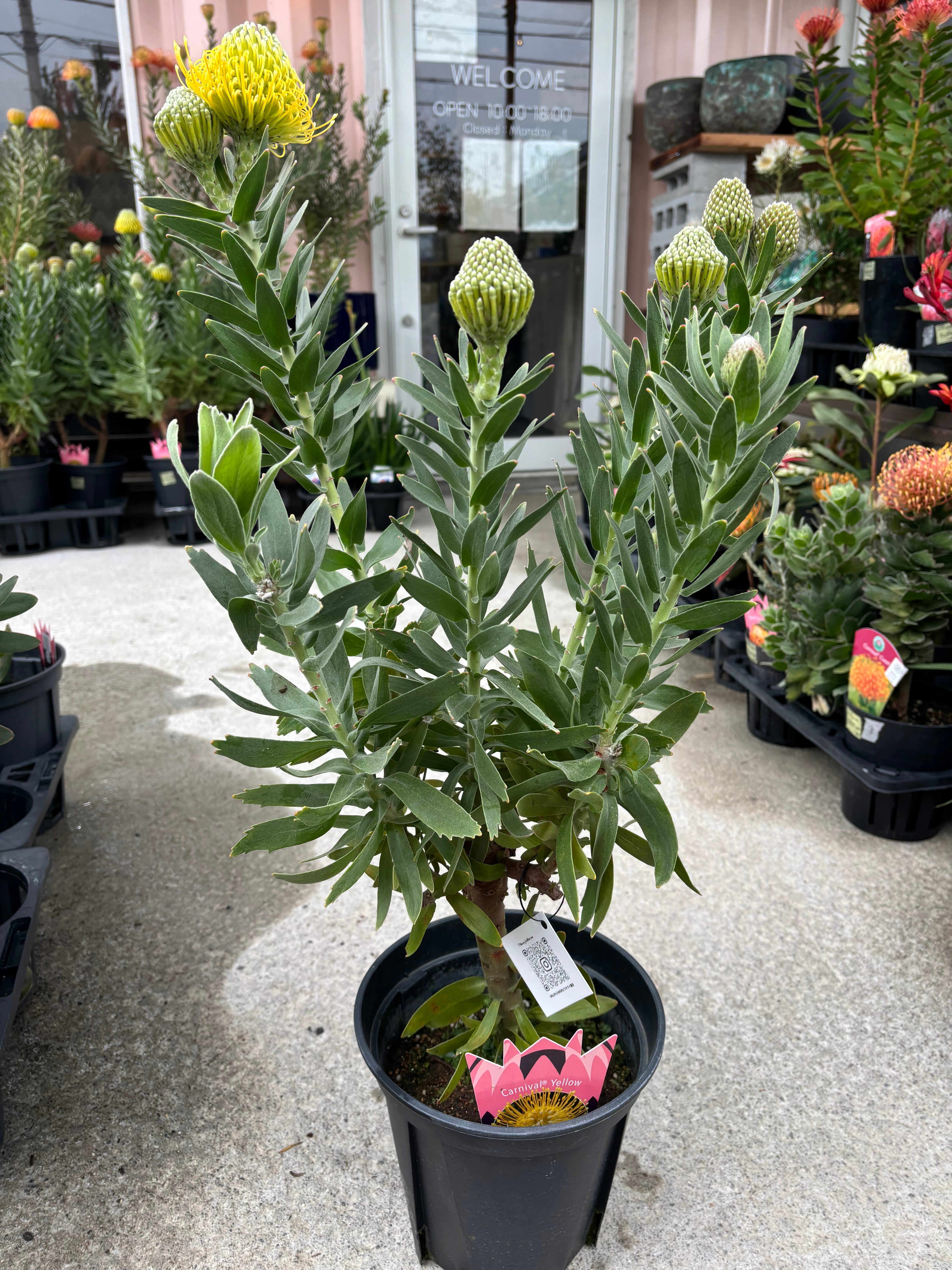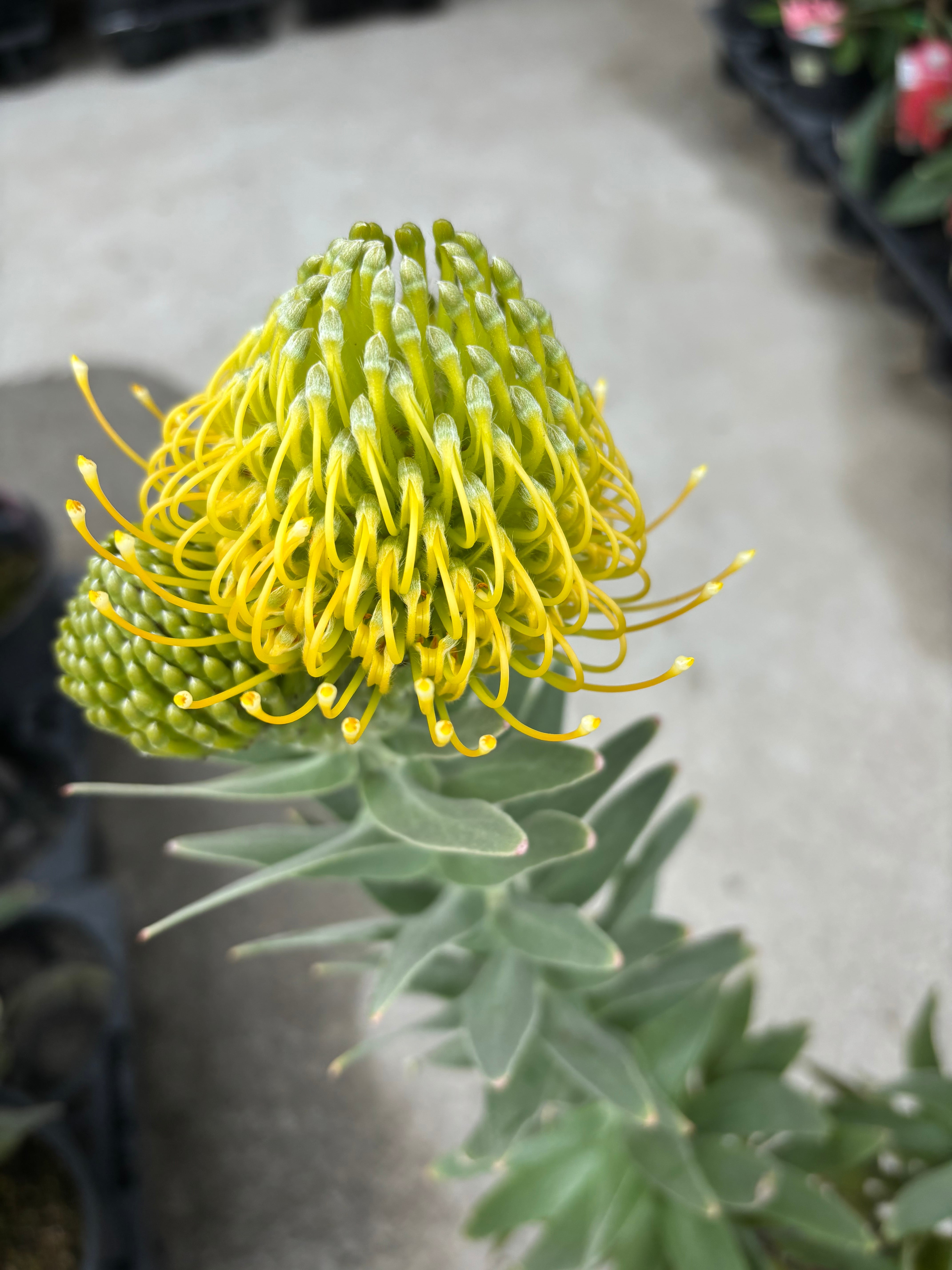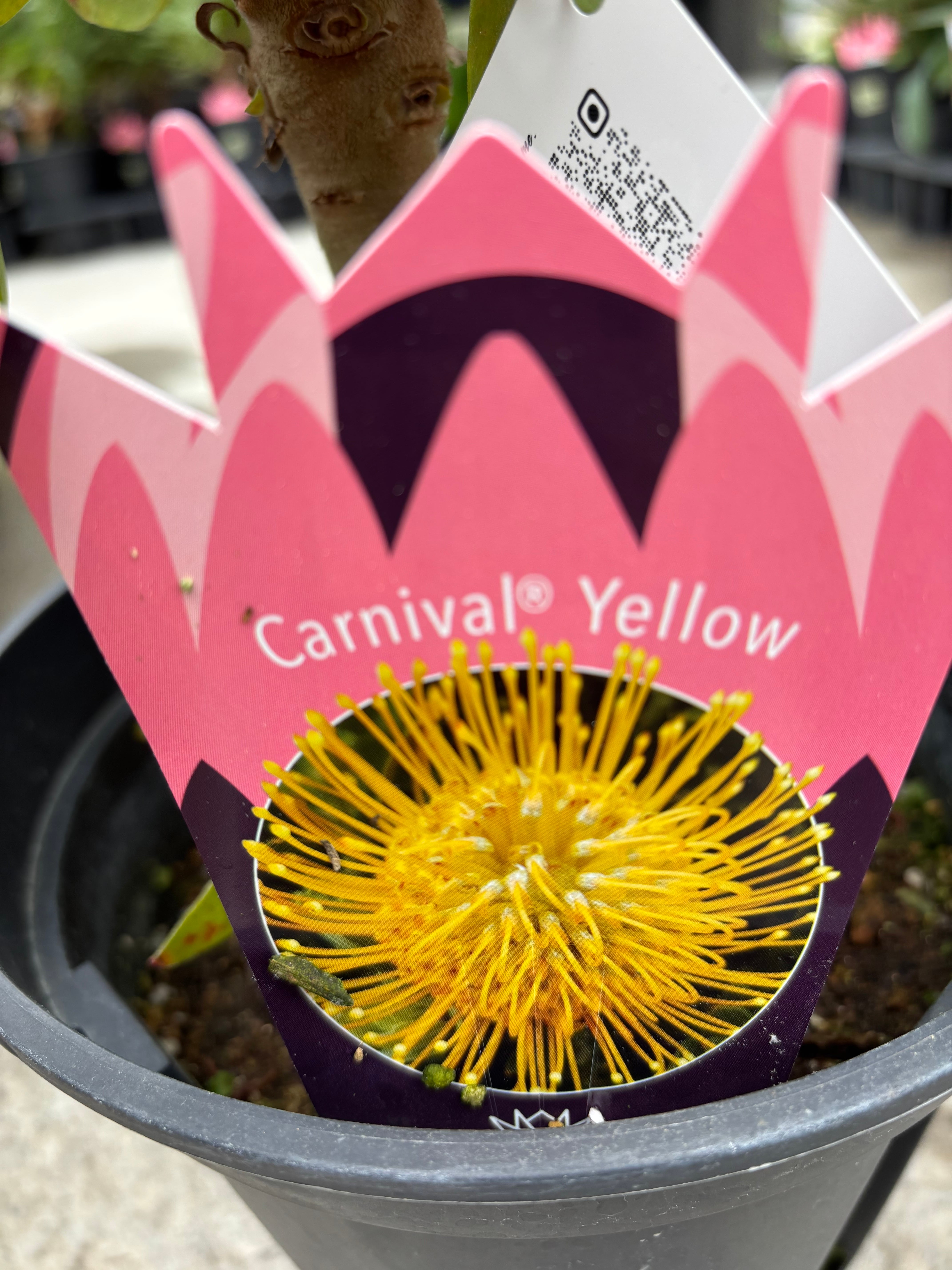 切り花でも人気の高いリューコスペルマムは、ピンクッションの名で親しまれており、個性的な花は非常に持ちがよく開花から3週間程美しい状態を保ちます^^カーニバルイエローはレッドに比べ成長が遅く、国内での大型開花株は希少です!
