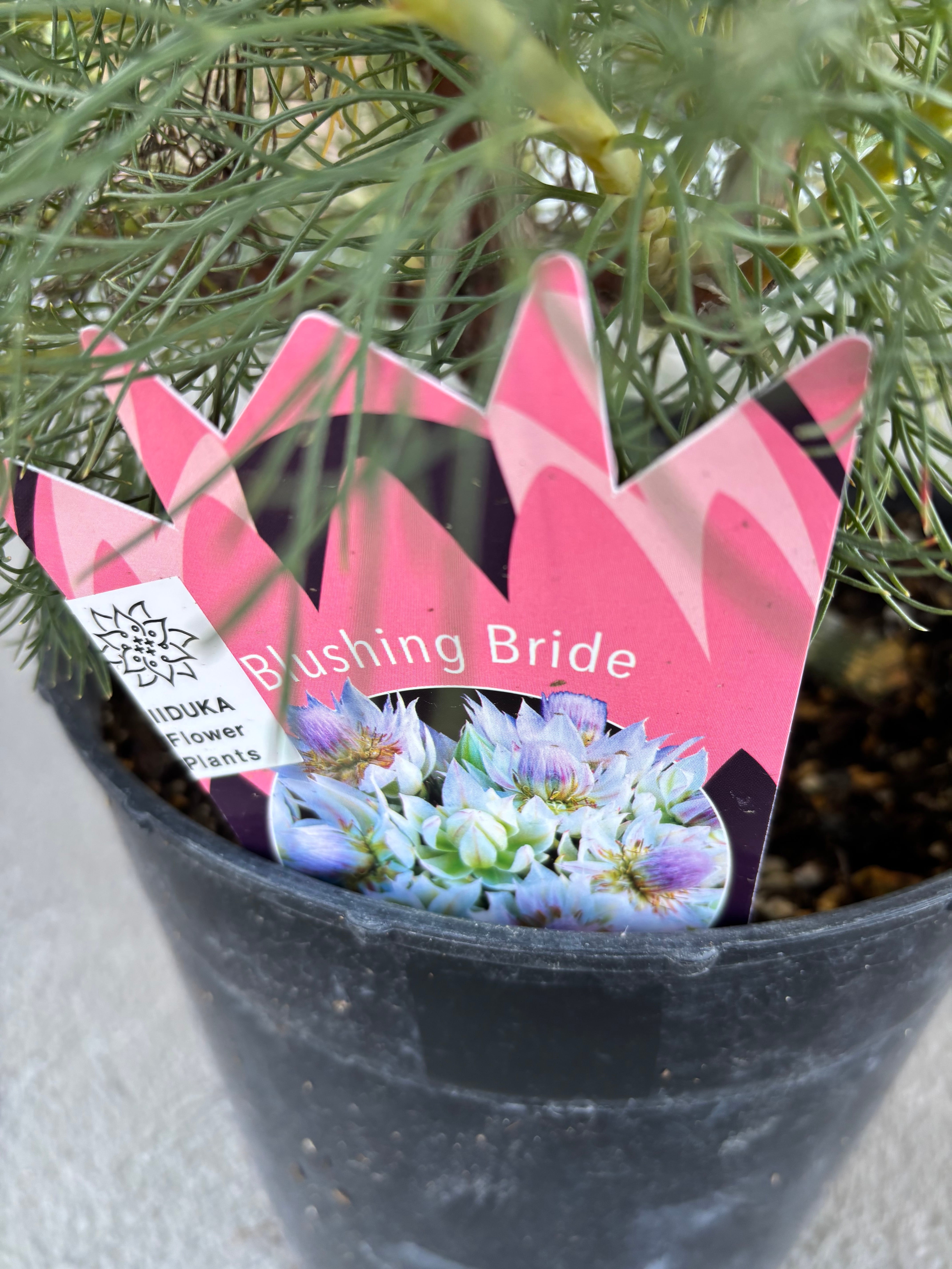 とても美しい白いお花を咲かせてくれます^^ダイアナ妃のブーケにも使われ、ブラッシングブライドは頬を染める花嫁と意味があります。花持ちがよく長く楽しめます!